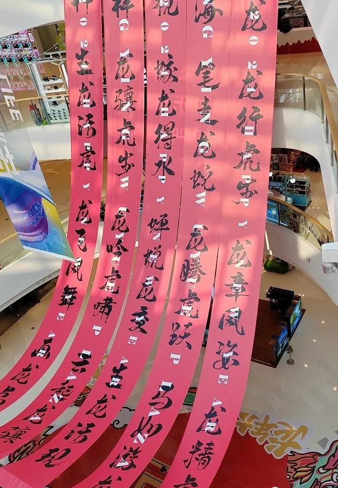 还有文创快闪活动,邀您“来个好彩头”。书法家现场送春联,喊上亲朋好友们一起来积百福,新的一年福气满满。