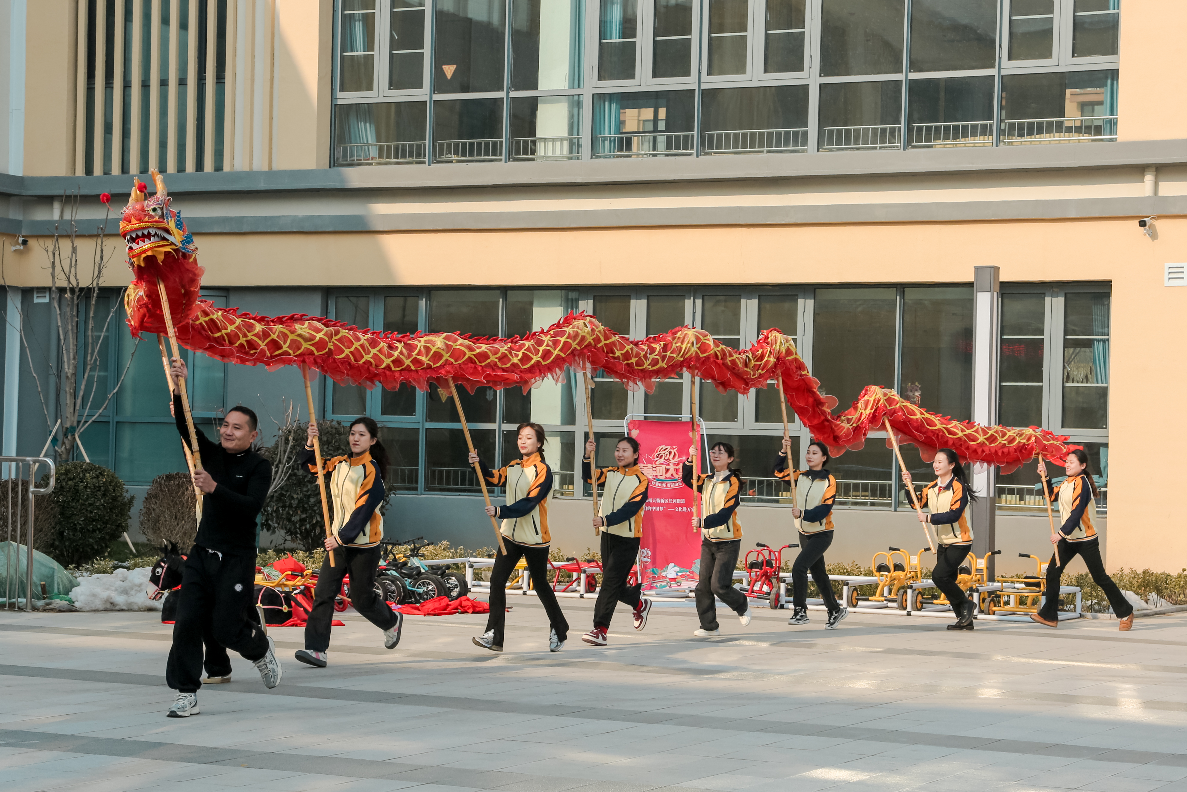 12月28日,德州天衢新区长河街道明德社区联合德州市直机关幼儿园天衢新区分园,举办“弘扬传统文化 做有根的中国娃——暨非遗文化走进幼儿园游园活动,本次活动含京剧、杂技、舞龙、扭秧歌等表演,一张张脸谱让小朋友们充满好奇,精彩唱腔让人赞不绝口,大秧歌跑驴让家长和孩子们捧腹大笑,舞龙表演让全场精神焕发、掌声雷动。
