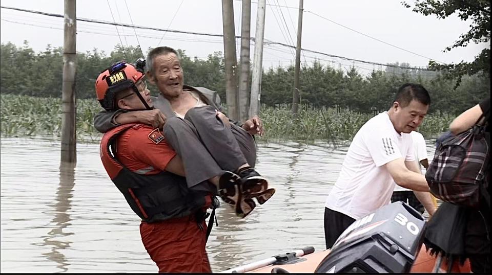 在北京救援结束后,8月1日16时左右,联合救援队到达河北省保定市涿州市东仙坡镇营救被困群众。在洪水中,救援队员们抱起老人,背起孩子,争分夺秒展开救援。