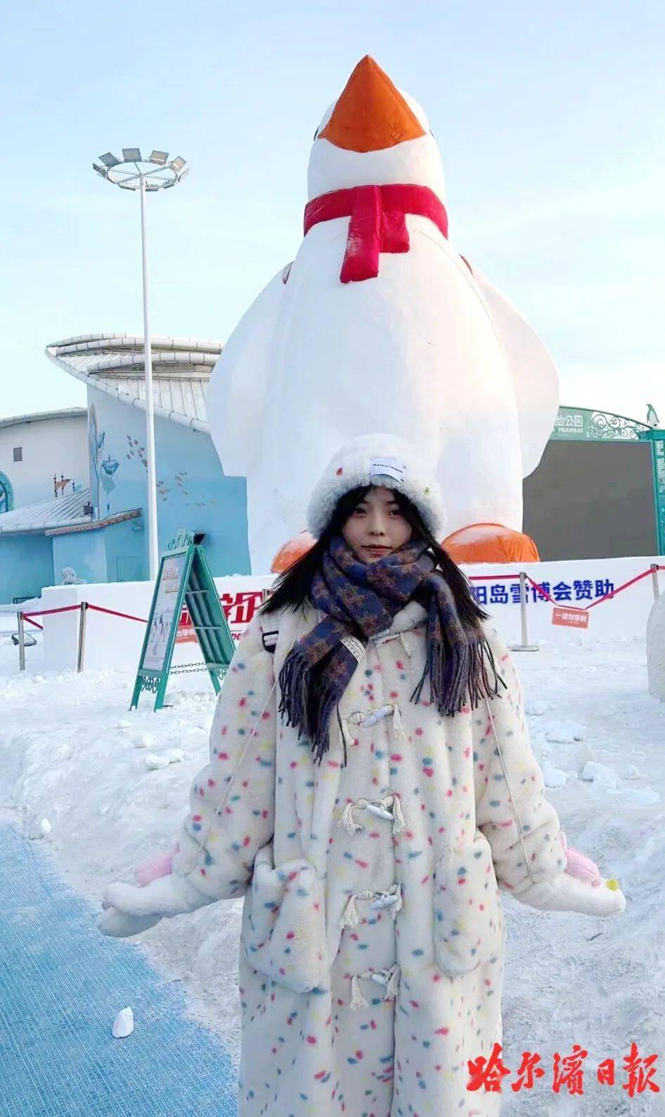 虽然刚刚离开哈尔滨,但小刘已经开始想念这座城市,她说,当听见大滑梯旁边的工作人员高唱“东北的冬……”她会特别自然地接,“刮西北风”,好像她也变成了“社牛”的东北人。