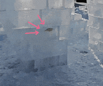 建造哈尔滨冰雕的冰块中有冻住的鱼,成为哈尔滨冰雕的另一道奇景