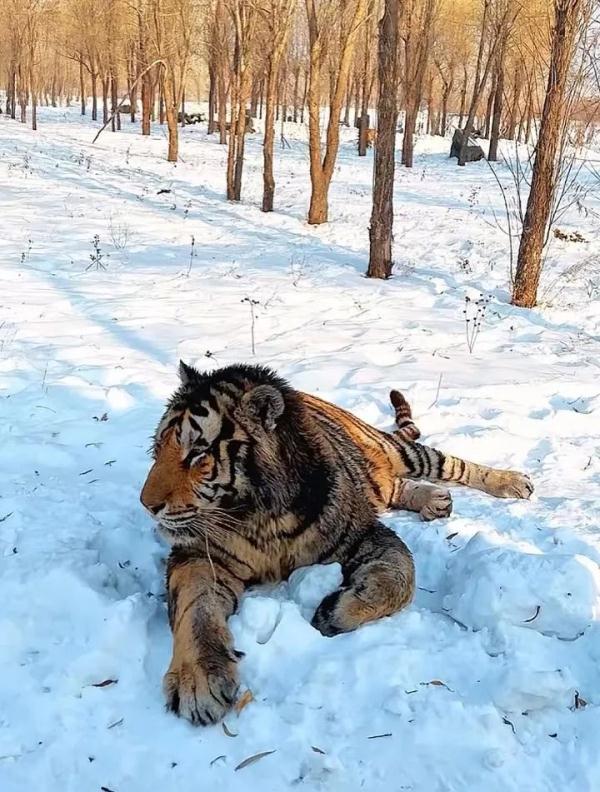 这个冬天哈尔滨的企鹅、鸵鸟都上了热搜,而东北虎作为最具代表性的本土物种,因为“二埋汰”的意外走红也终于火出了圈。黑龙江东北虎林园的工作人员表示,欢迎游客们近距离参观“虎明星”,至于网友提议让“二埋汰”去中央大街接客,人家乐了,“这也太‘刑’了吧,它去了就一秒清场了。”