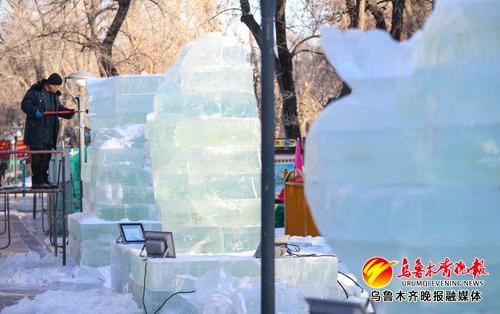 ●随着春节的临近,人民公园以“二龙戏珠”为主题的18组冰雕制作已进入尾声。预计1月12日起,市民和游客入园即可观赏。