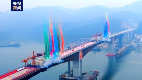 ●1月6日,世界最大跨径1800型波形钢腹板连续刚构桥——飞龙大桥,实现全桥合龙,稳稳架设于广西横州市平马镇与新福镇交界处。接下来,飞龙大桥将开始桥面附属工程施工。