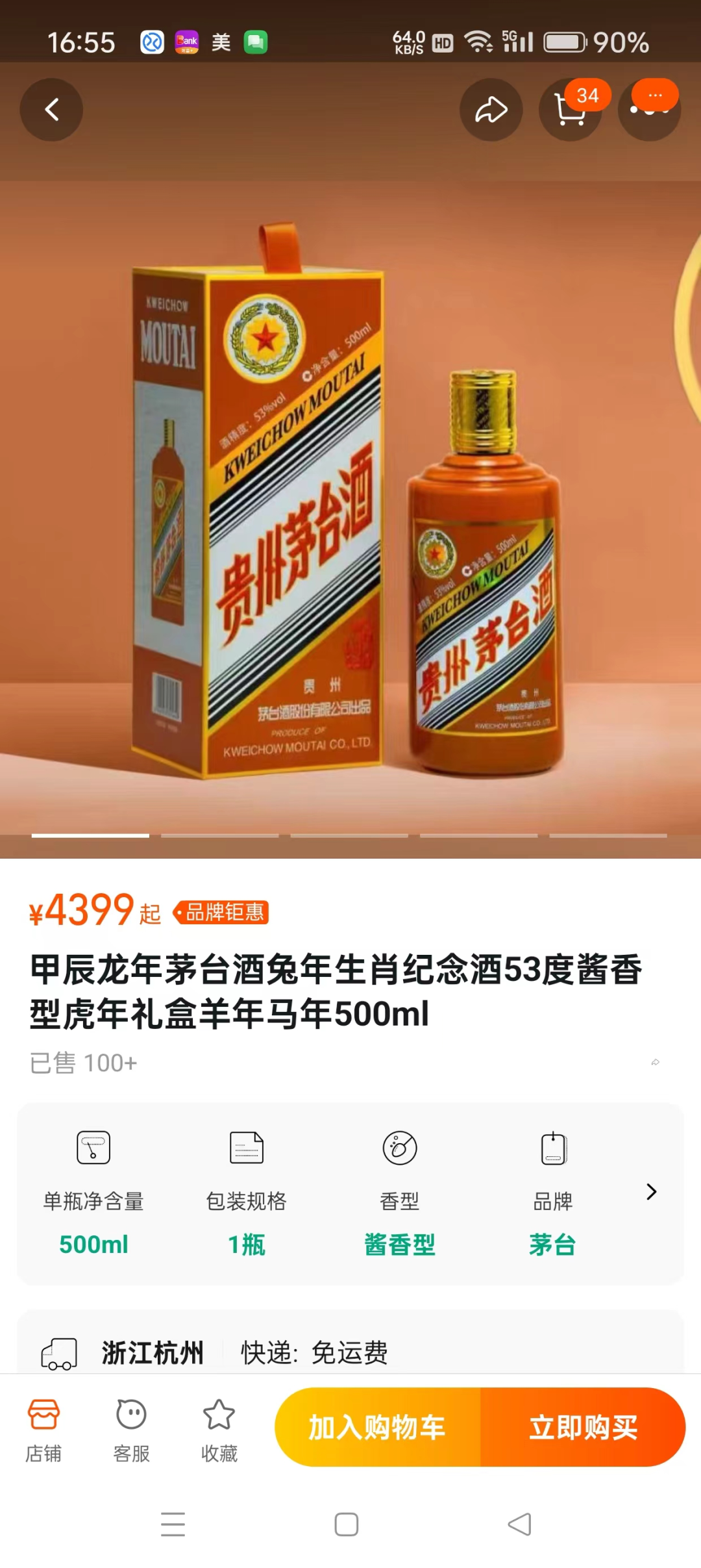 记者从多个平台获悉,目前龙年茅台生肖酒的价格相对发行时的价格已大幅下降。记者在二手交易平台看到,有人愿意以4000元的价格转让龙年茅台生肖酒的提货资格。而在天猫平台上,记者也看到,4399元便可以在线上平台直接购买到龙年茅台生肖酒。
