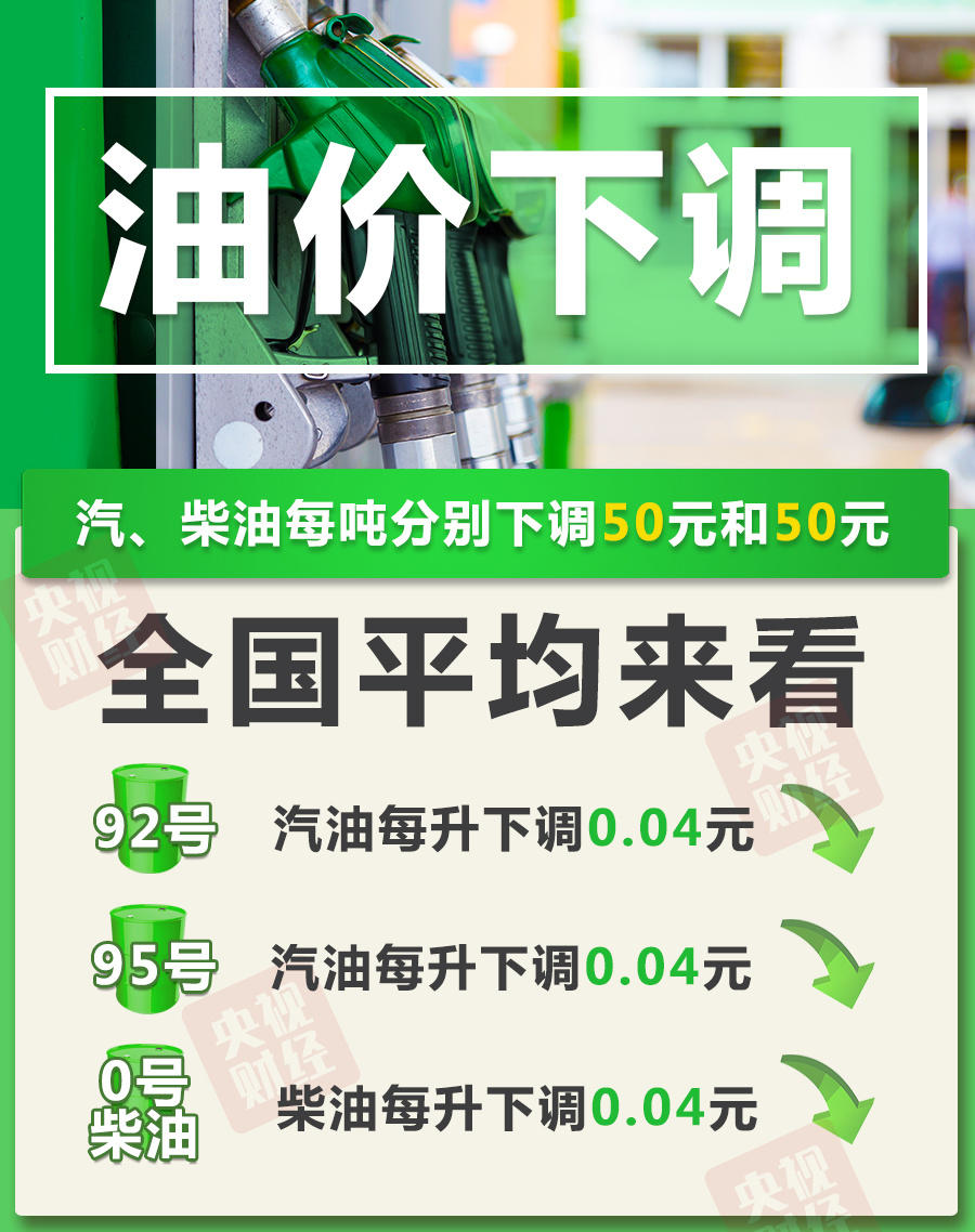 全国平均来看:92号汽油每升下调0.04元;95号汽油每升下调0.04元;0号柴油每升下调0.04元。