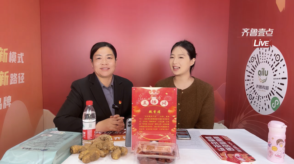 线下进行展示展销的同时,现场展厅内四个“齐鲁农超·村村有好品”直播间也格外显眼。来自潍坊市安丘市石堆镇高家下坡村的党支部书记、村主任魏香娟也亮相直播间,带来潍坊特色产品。