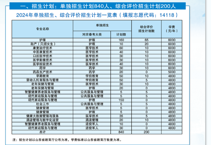 菏泽家政职业学院2024年单独招生、综合评价招生计划