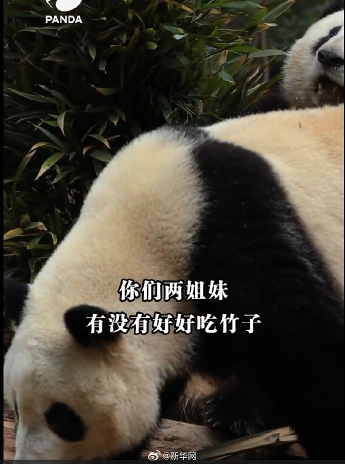 在成都大熊猫繁育研究基地24日发布的视频里,谭爷爷对着“和花”“和叶”温柔呼喊着“两姐妹”。很多网友在评论区表示“震惊了!”还有网友说,感觉谭爷爷知道和叶是妹妹后连招呼都变得温柔了。