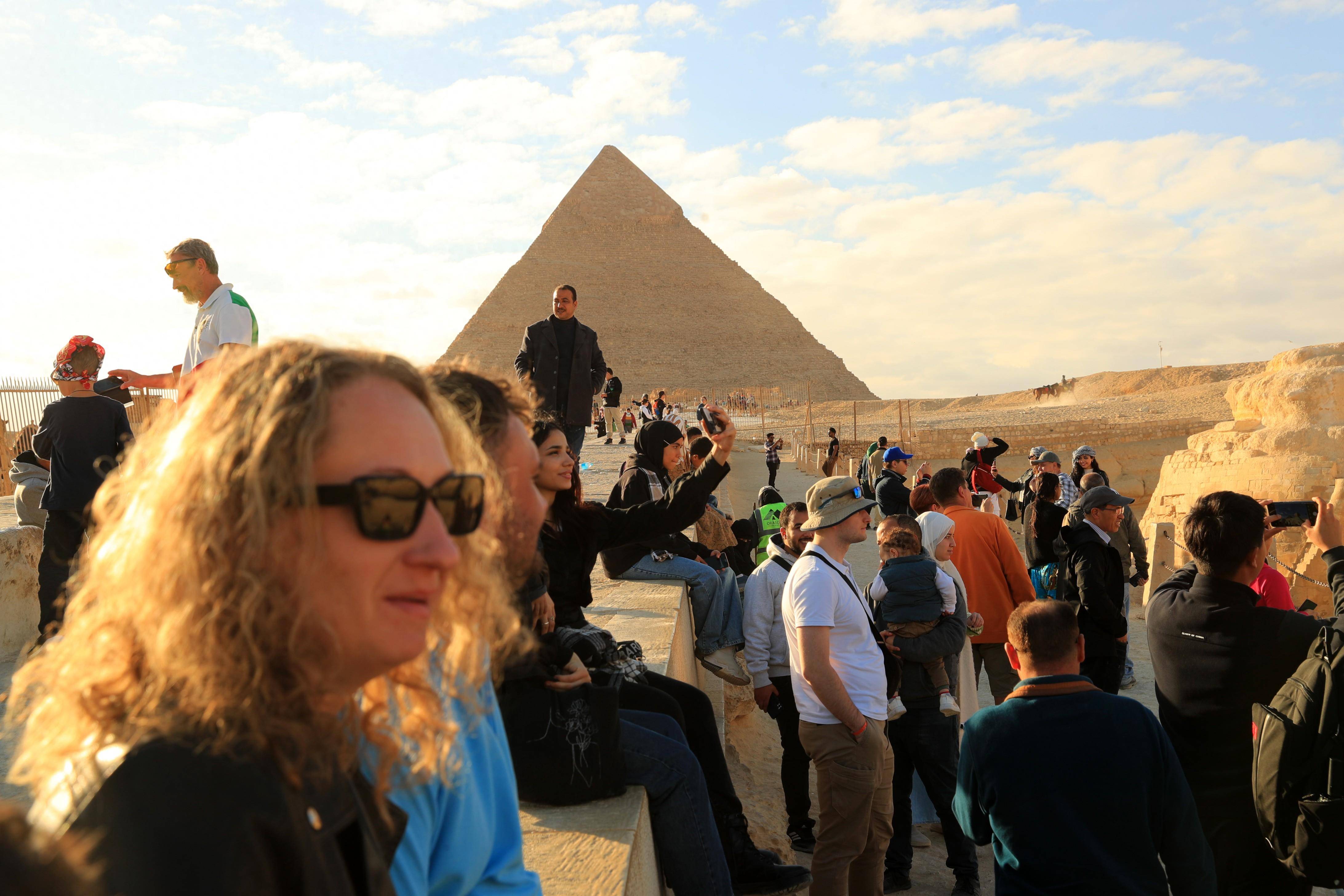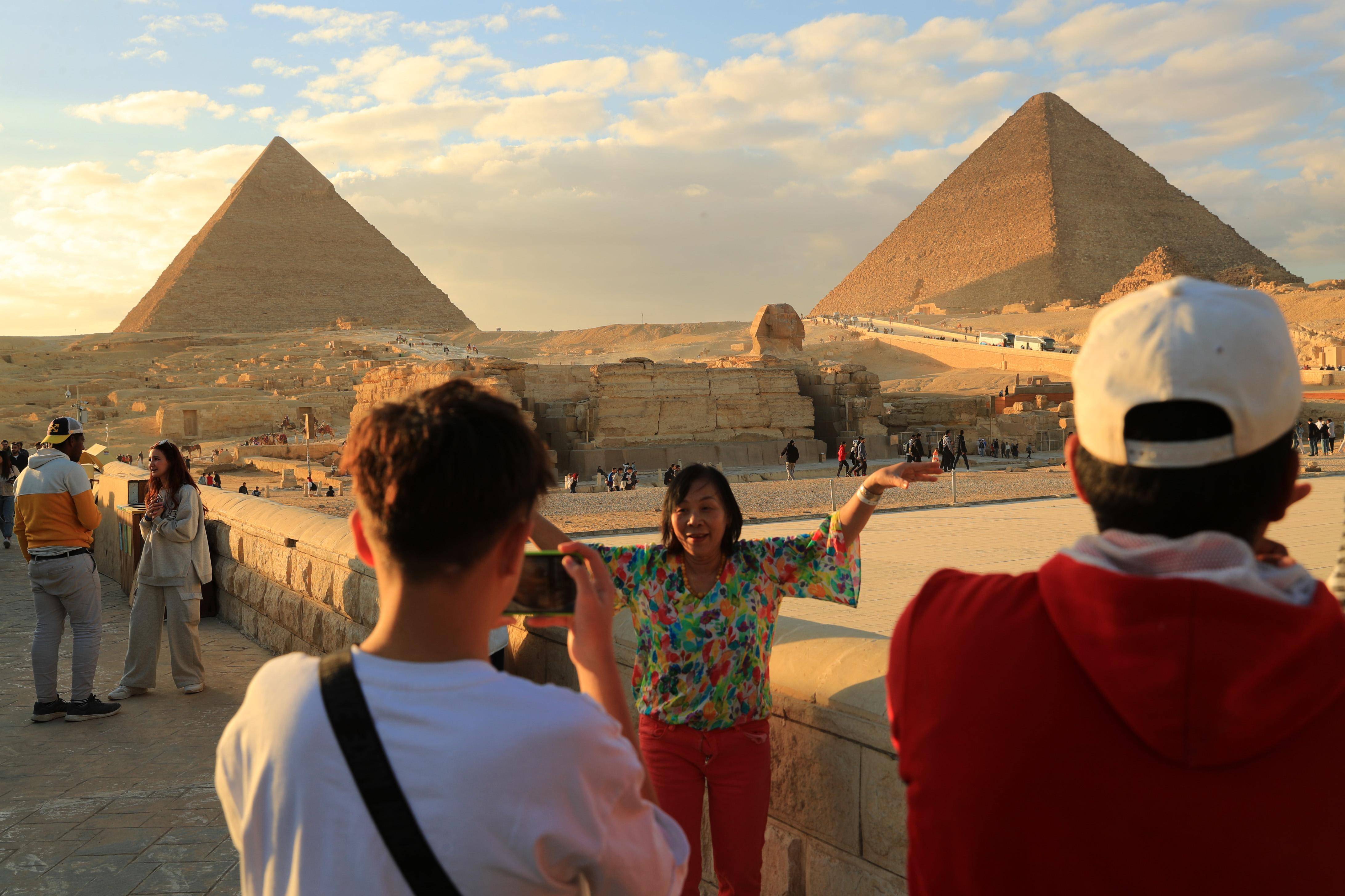 1月24日,游客在埃及吉萨金字塔景区游览拍照。 新华社记者 隋先凯 摄