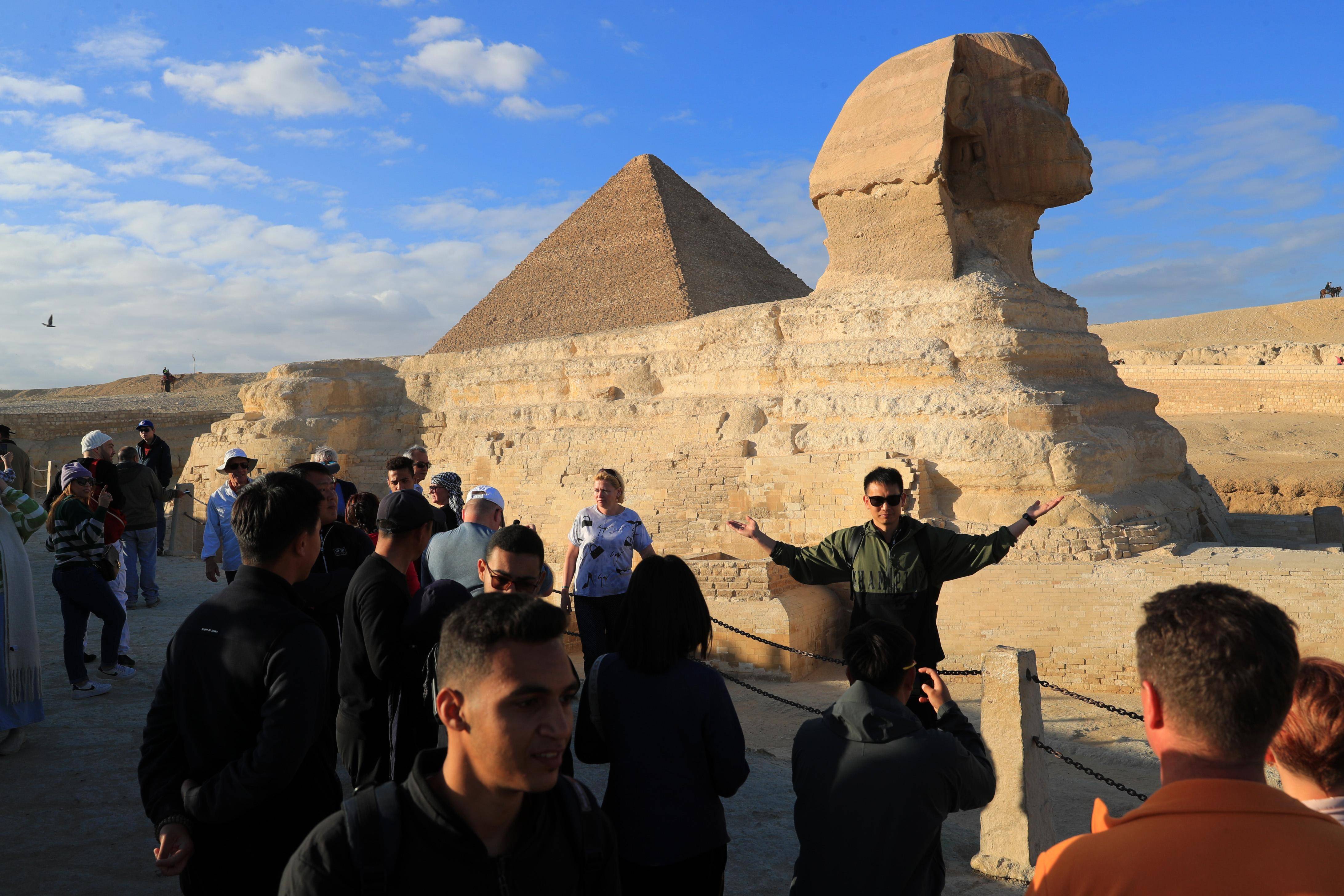 1月24日,游客参观埃及吉萨金字塔景区内的狮身人面像。 新华社记者 隋先凯 摄