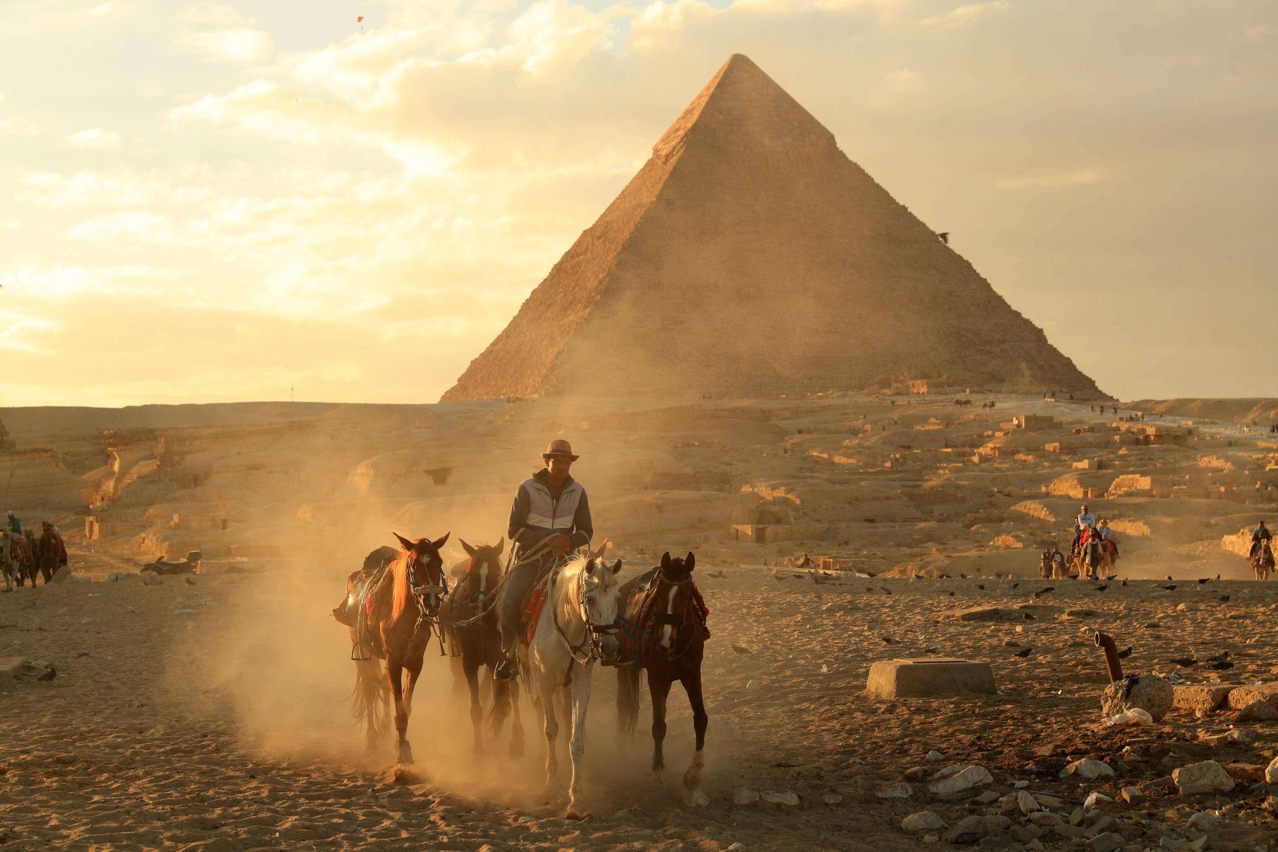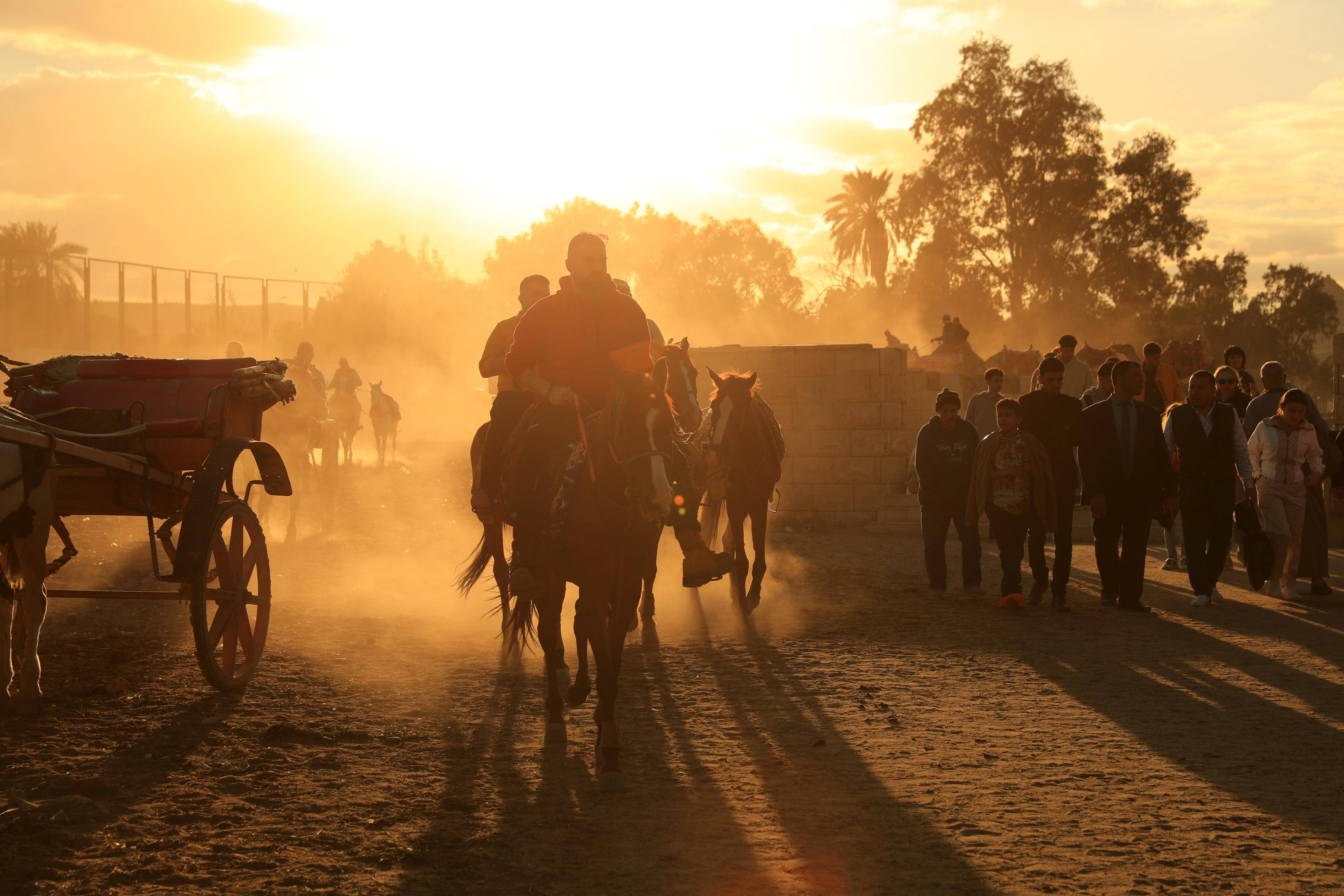 1月24日,商贩骑马离开埃及吉萨金字塔景区。 新华社记者 隋先凯 摄