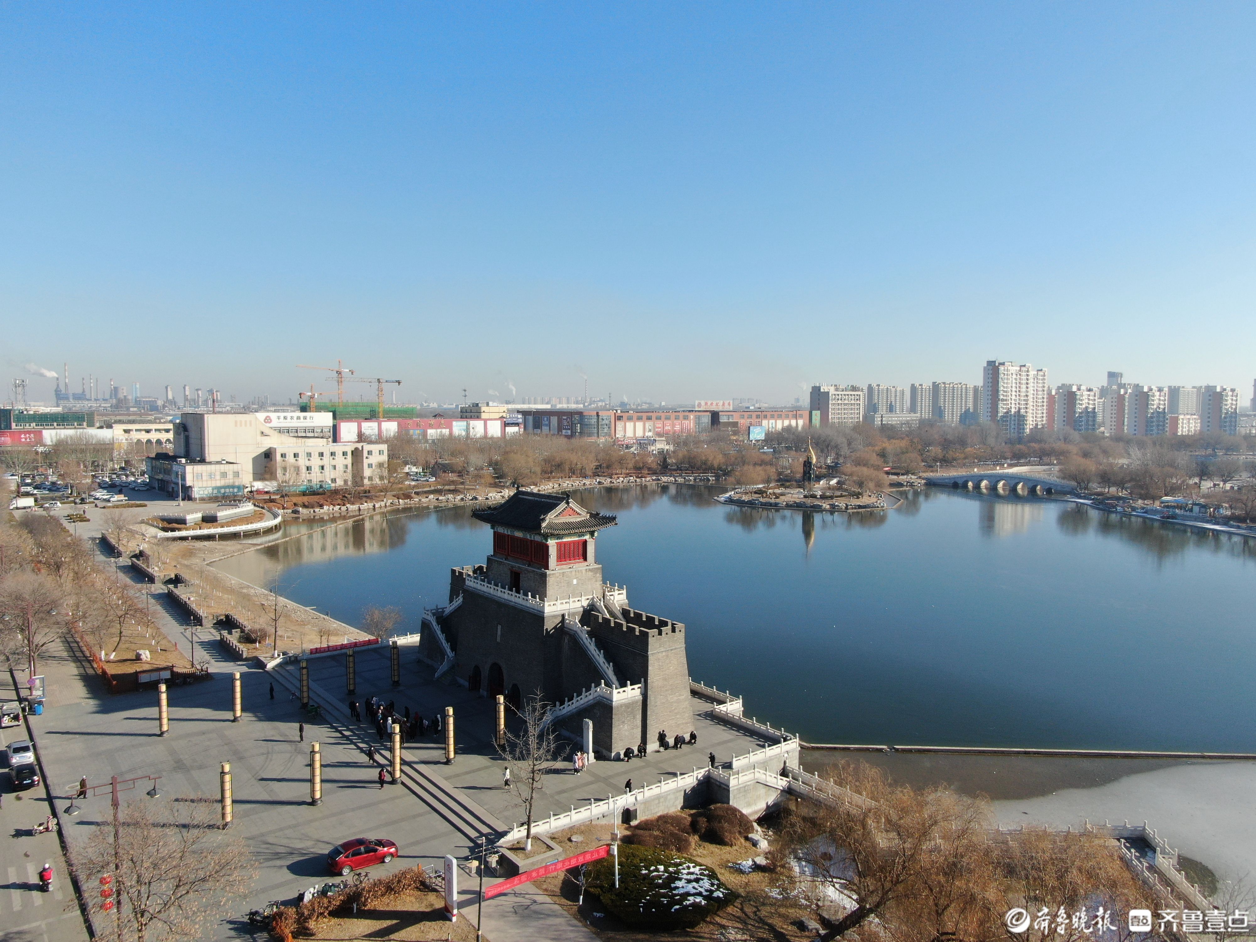 青砖灰瓦,红漆大门、楼上飞檐翘起、栏杆上雕刻着龙的形象……这是位于平原县新华南路和龙门路交叉口的龙门楼,坐落在琵琶湾西畔,是平原县的标志性建筑,其历史源远流长,初建于明万历元年(公元1573年),历经修缮、拆除,于2008年重建。随着农历龙年的脚步越来越近,2024年1月初,龙门楼重新对公众开放,登楼眺望,平原县城的美景可以一览无余,让人心旷神怡。