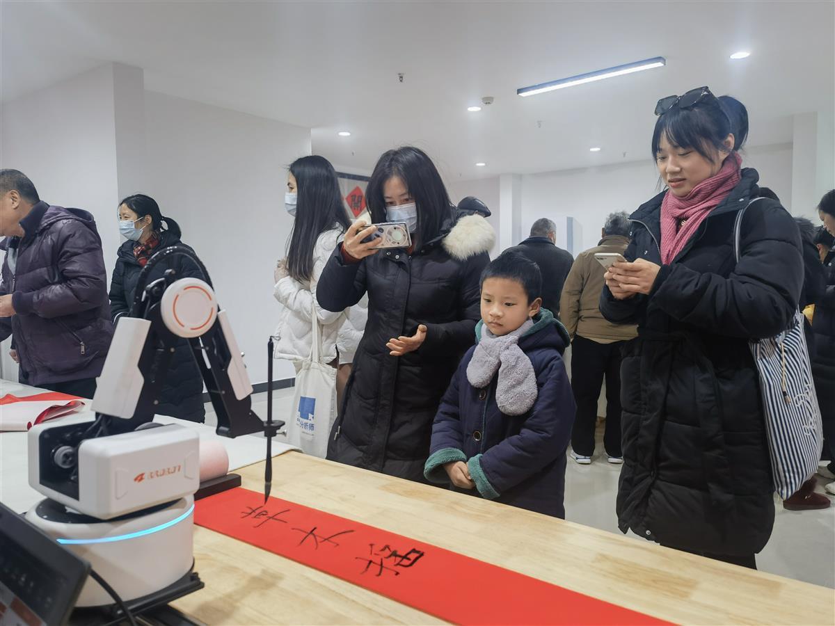 据悉,当天由民间书法家和机器人共同书写的百余副春联、福字,将由街道赠送给周边社区的居民群众。