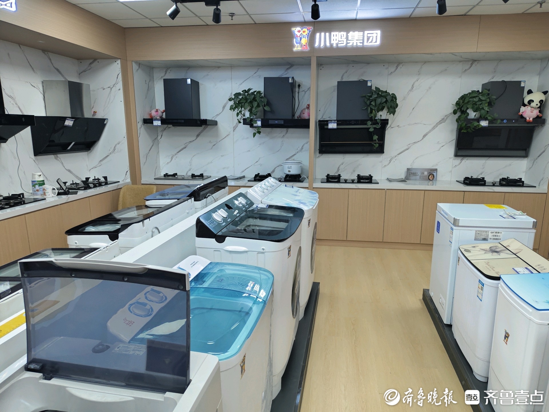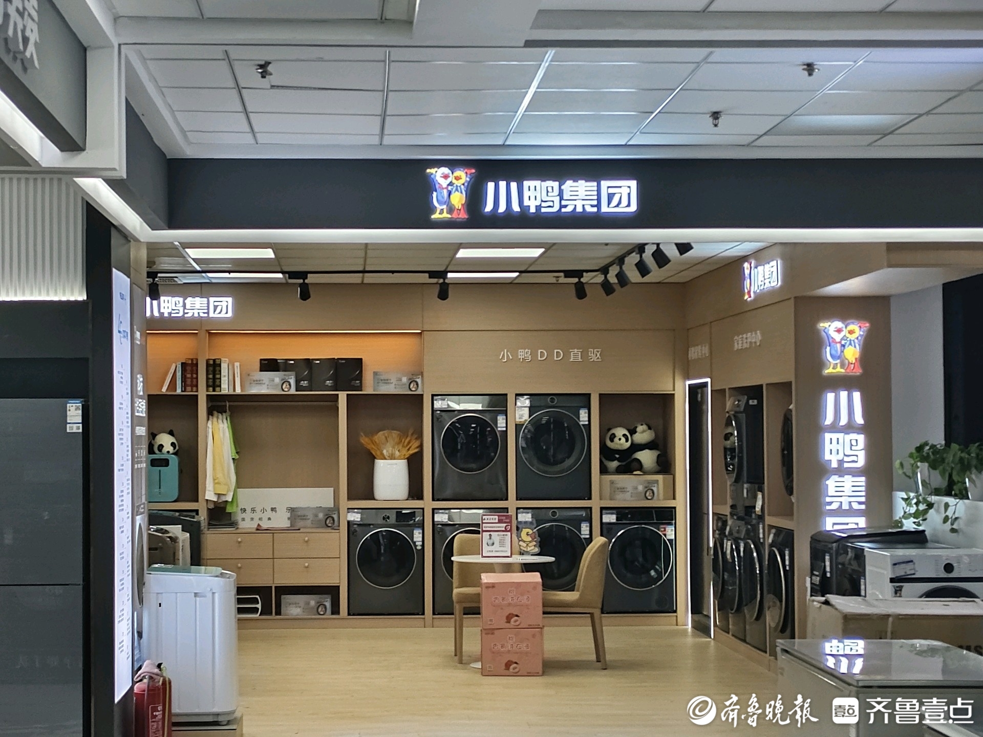 当天上午,记者走访了小鸭电器多家线下门店。走进北园银座店,小鸭集团的标志性logo非常醒目,店内的陈列产品也是以洗衣机为主。周围虽有美的、格力等品牌门店,但小鸭洗衣机依然受到市民欢迎。