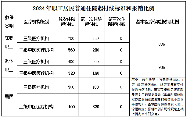 1.市内中医医疗机构普通住院起付线下调。参保人员在市内定点中医医疗机构每次普通住院起付线较同级综合医疗机构降低20%。自2024年1月1日起执行。