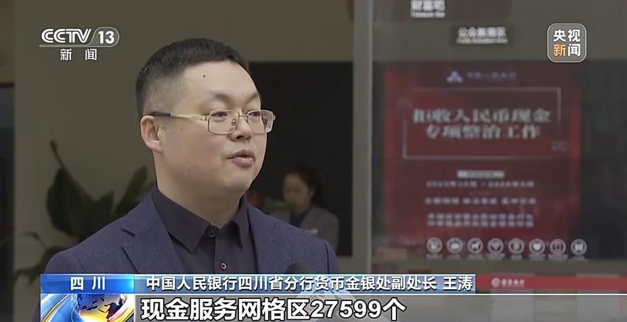中国人民银行四川省分行货币金银处副处长 王涛:全省共建成现金服务网格区27599个,实现社区、村委会覆盖率98%以上。