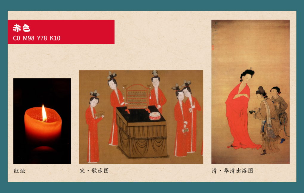 赤色代表火与太阳,在传统五色观色彩理论中属正色,在五行观中属南方。被纳入赤色系列的红色在我国象征吉祥、喜庆、婚嫁、热闹与热情。红色贯穿了整部华夏历史,渗透到各个层面与领域,是中华文化的深厚底色。