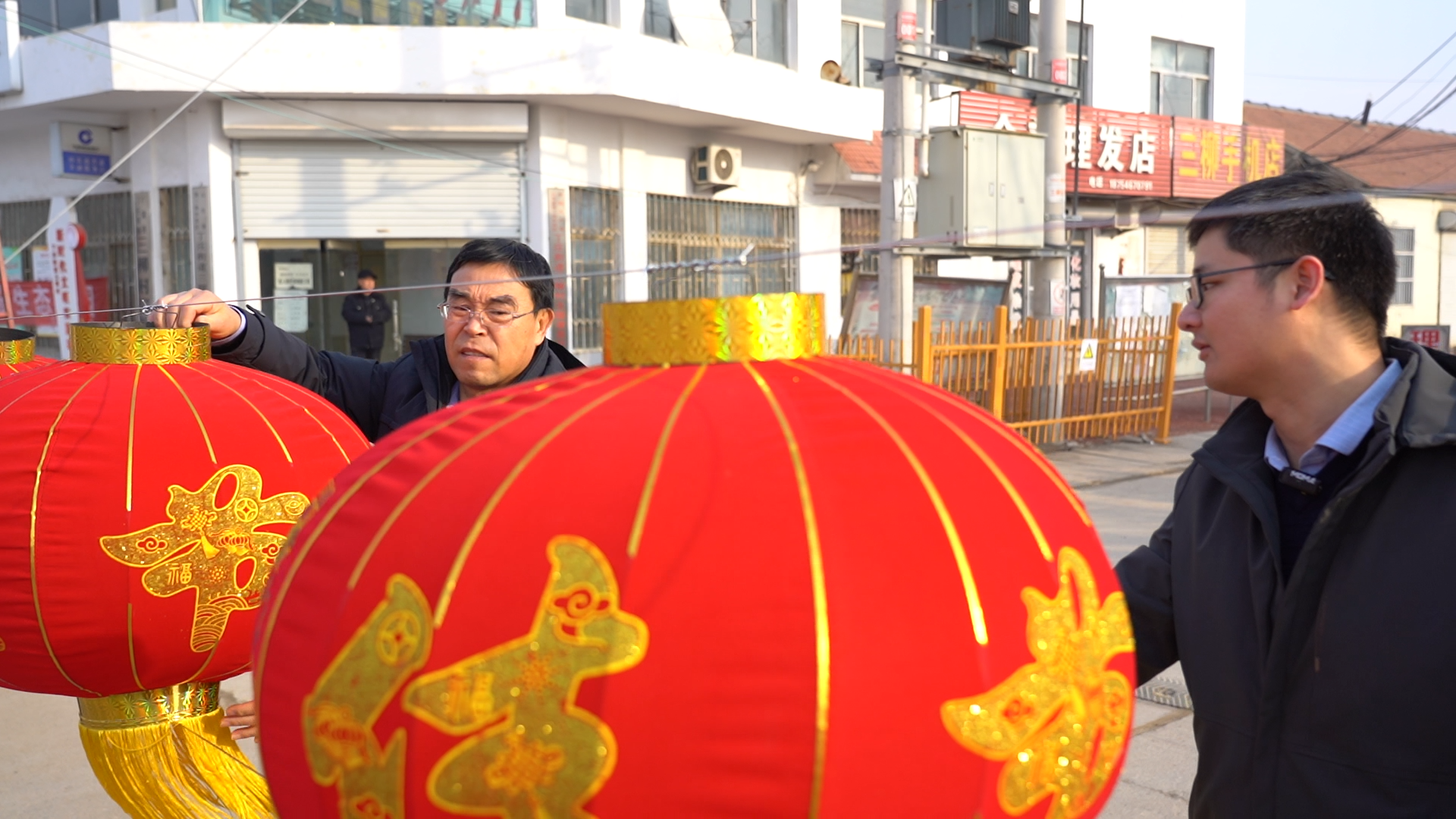 张灯结彩,迎春送福。过了小年,省黄三角农高区丁庄街道三柳村里的年味越来越浓。