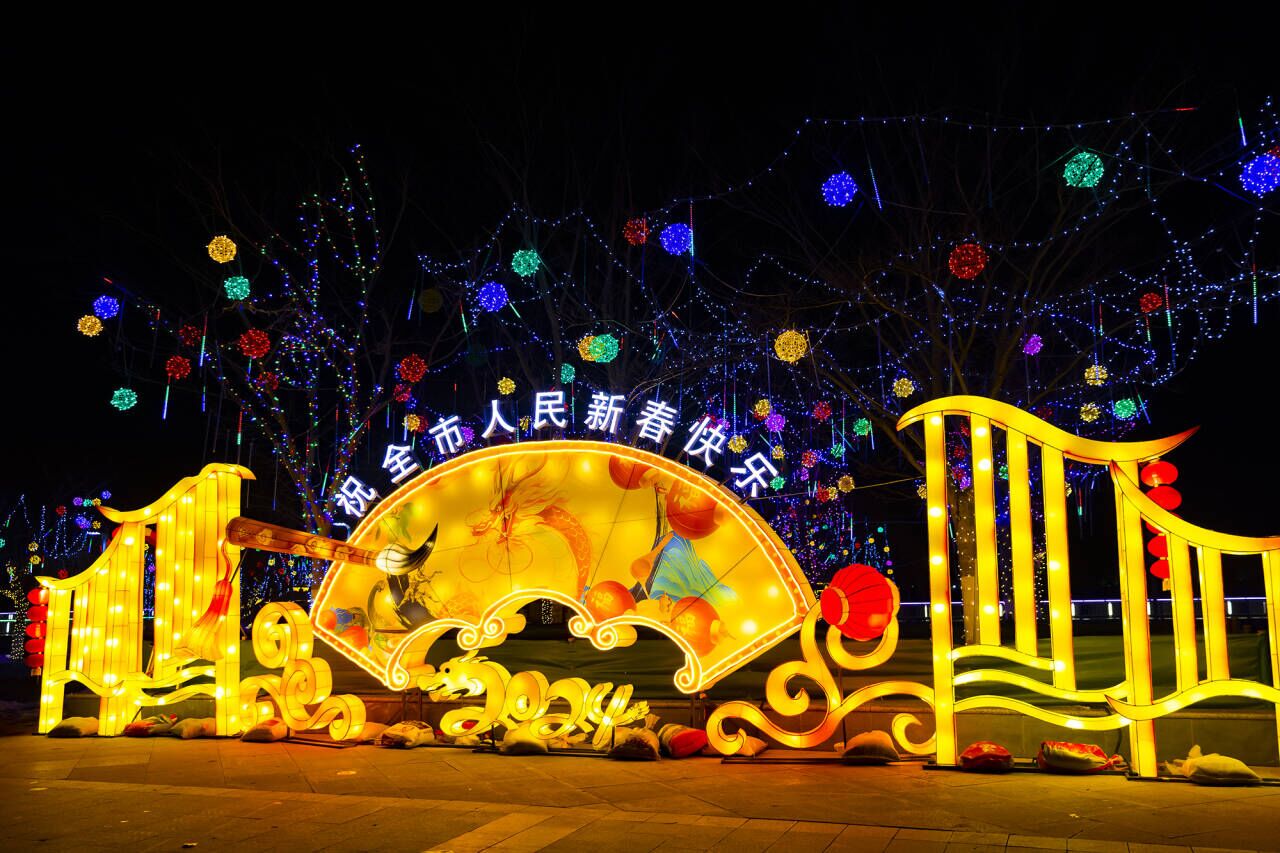 据悉,本次灯会将现代科技与传统元素相结合,以中国传统的花灯艺术为基础,采用灯光声电等先进技术,围绕莱阳市中国预制菜第一市——“莱阳味道”品牌,紧扣“中国梨乡”“中国恐龙之乡”“中国花生油之乡”三张名片,结合莱阳城市IP形象“龙龙”和“阳阳”以及莱阳特色,精心雕琢,设计制作了大型贺年灯组9组和生肖花灯1组。此外莱阳市还在旌旗路、五龙路、火车站广场实施景观提升改造,安装7组灯组,亮化树木1000余棵。