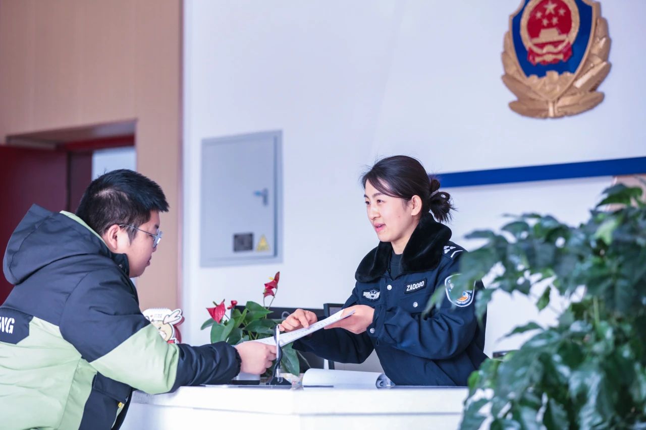 临近年关,服务大厅仍有不少前来办理业务的居民。辅警盖莎莎一直忙碌着为居民办理户籍业务,这是她连续第16个春节在岗轮值。“忙活完群众的事,过年心里才踏实。”她说。
