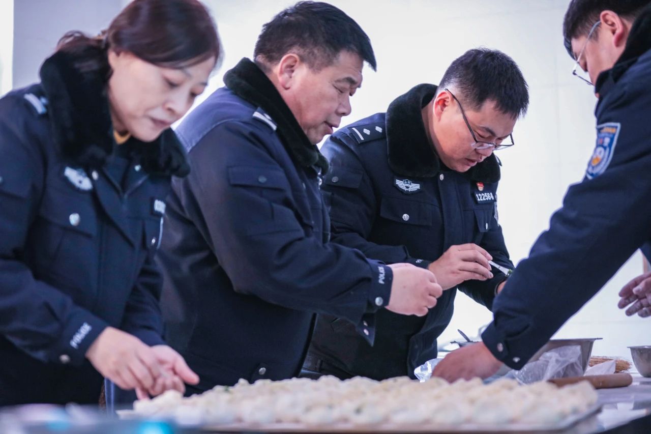 连轴转了一天,回到派出所里后,大家纷纷撸起袖子,有的揉面,有的擀皮,热热闹闹地包起饺子来。不一会,热腾腾的饺子新鲜出炉,一口入肚,一天的疲惫一扫而光。