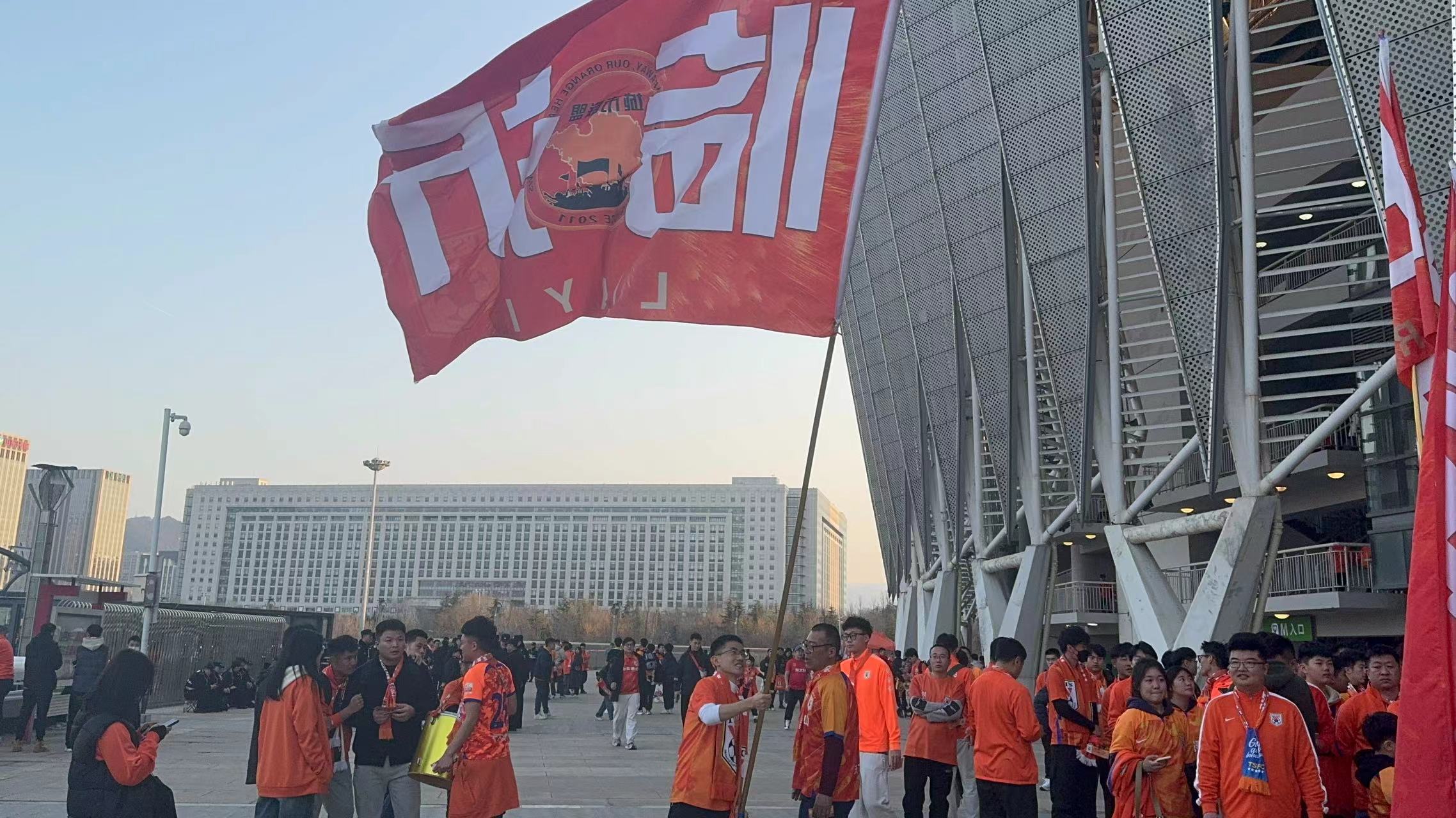 5点30分,体育场内座无虚席,橙色的人浪一波接着一波,山东泰山队球迷的呐喊声响彻云霄。