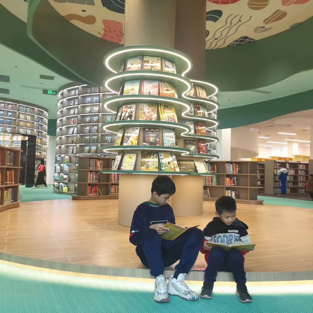 其中,一楼设置智能自助图书馆、新华书店;三楼少儿空间设置有低幼绘本区、胶囊亲子阅读区、VR/MR体验区等,满足青少年阅读活动需求的同时,兼备科普功能;四楼市民书房设置有红色主题图书区、视障人士阅览区、自修区等。