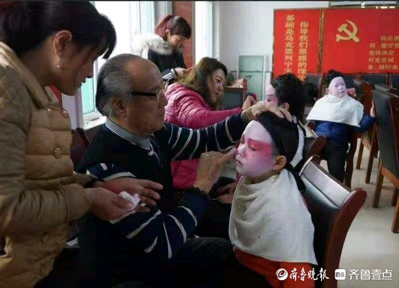 “玩芯子得50多年了,9岁开始就登台唱戏,那时候是小演员。”采访中记者了解到,受农村民俗文化的影响,加上自己的爱好,张可水参加过不少文艺活动。过去村里玩芯子,他就跟着学,多次参加过周村区文化馆组织的文艺下乡,下基层宣传队活动。在此期间正规学习了由文化馆组织的专业教师教授的化妆、乐理知识、演唱、二胡等方面的文化艺术,从而掌握了这方面的技艺,后来还跟潍坊京剧团的名角学习了包头化妆。