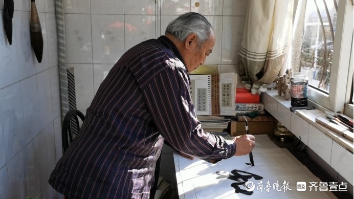 “今年过年写了120幅对联,腊月二十八的时候,社区发放给居民。”除了爱好玩芯子,张可水也非常热爱书法。他的写字台就在阳台,光线充足明亮。他介绍道,“写书法最重要的几个部位横、竖、撇、捺、钩。”