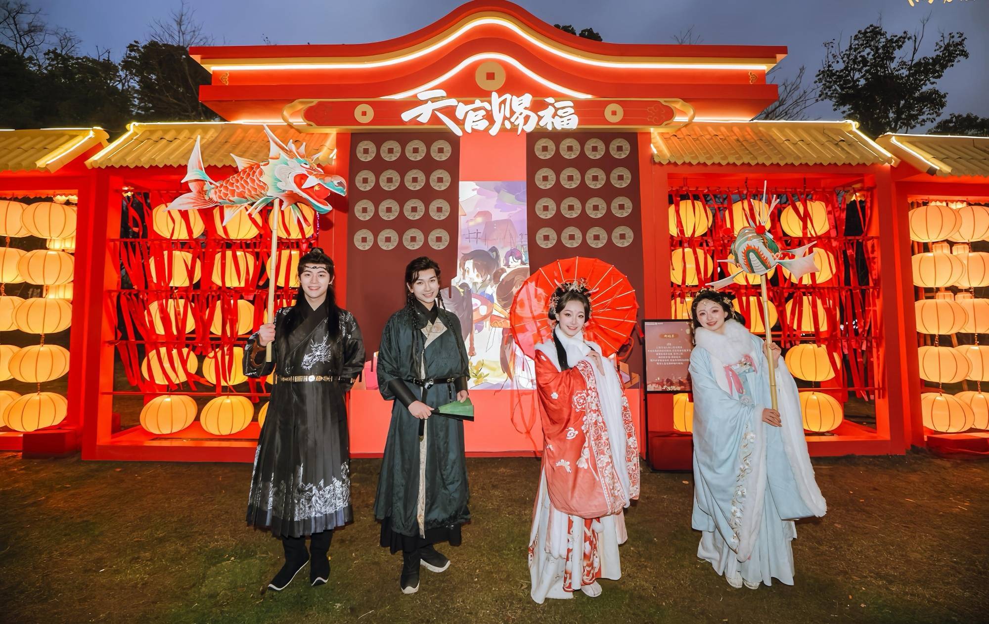 春节期间,苏州乐园携手“国家非物质文化遗产——自贡彩灯”首次推出“新春灯会”主题活动,以祈福文化为核心,设置“天官赐福、山海奇境、五龙聚首”三大主题区域,展出超50组灯组造型、千余盏氛围彩灯。各个灯组通过“形、色、声、光、动”营造出交相辉映的沉浸夜景,装点出浓浓的年味,这也成为长三角地区灯组体量最大、数量最多的灯会活动之一。