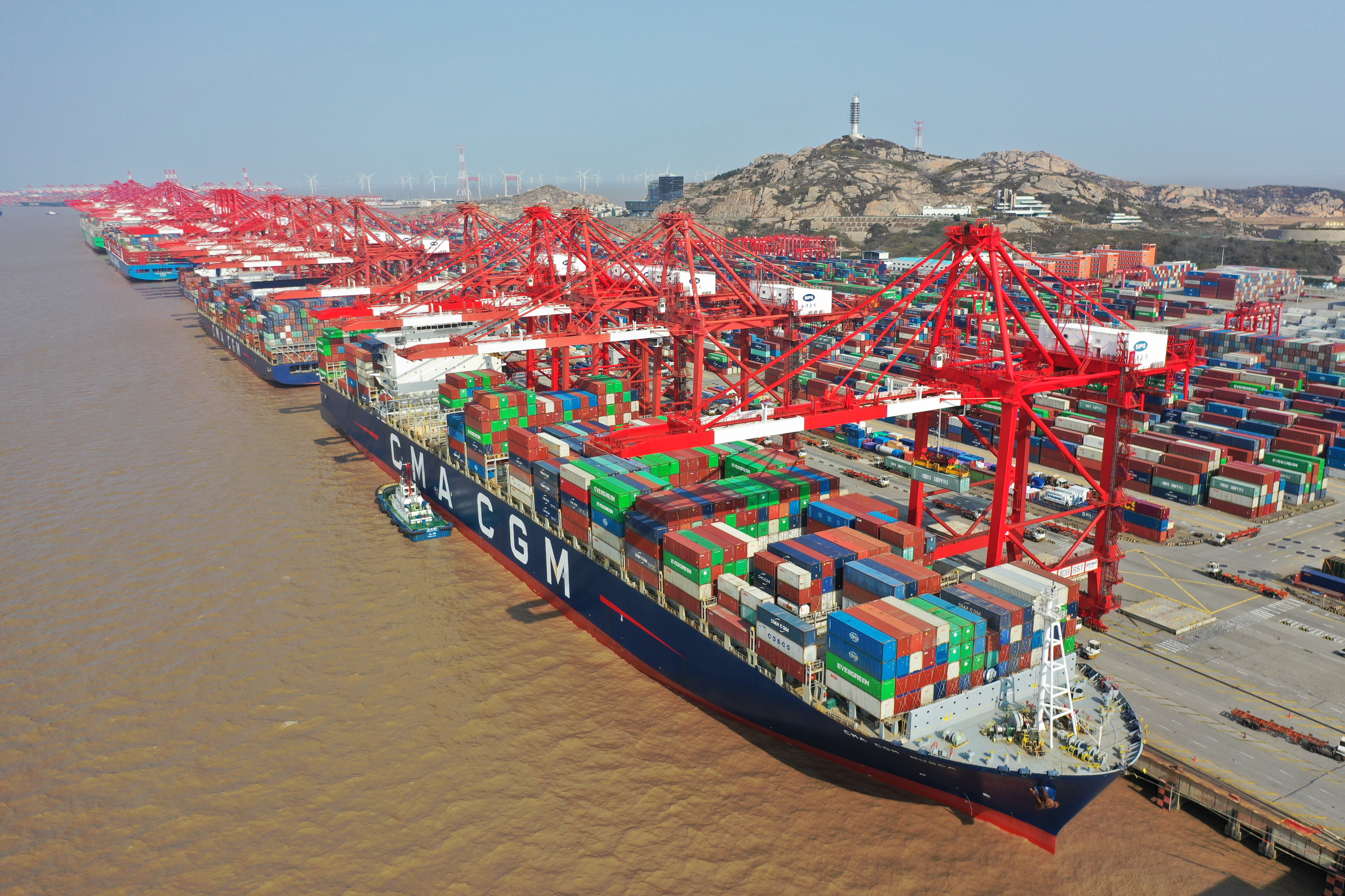 龙年开工首日,上海洋山深水港6艘巨轮计划装卸27500个标箱
