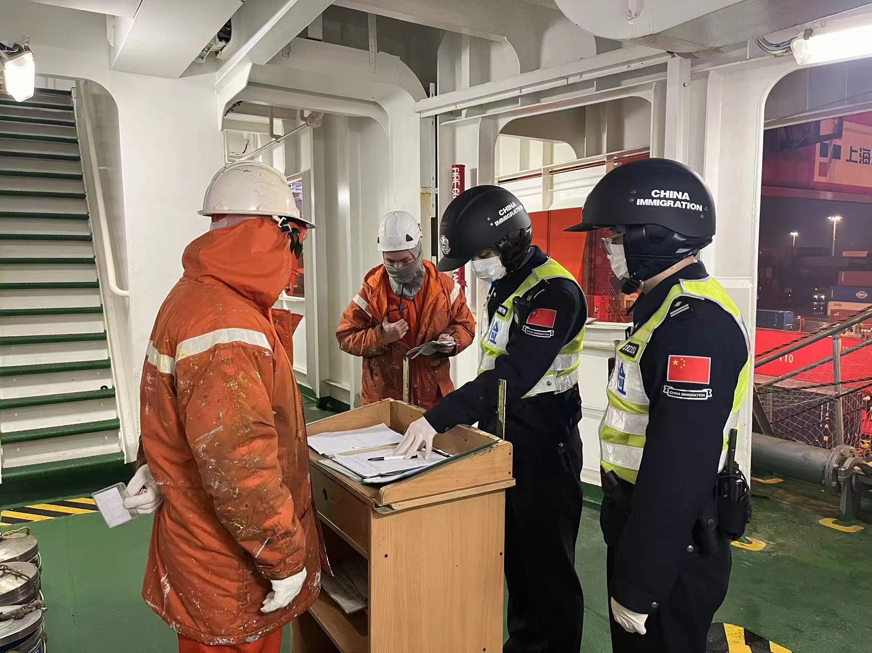 洋山出入境边防检查站民警24小时在岗保障节日期间口岸顺畅通关。范勇 摄