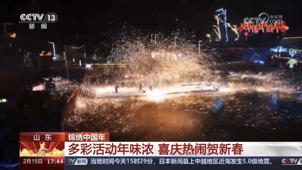 春节期间,潭溪山旅游度假区位列美团平台销量排名淄博第一,抖音平台淄博自然景观热销榜第一;山东文旅·红叶柿岩旅游区的“龙年第一漂”“冰上的铁花”两大“王炸”被央视CCTV《新闻直播间》点赞,20个平台同步直播,累计超370万名游客同时在线观看;淄博五音戏亮相央视《2024年春节戏曲晚会》,地方剧种走上央视舞台;龙年非遗文创产品“龙龘龘”和“狐狸仙仙”一经上线就被抢空,独特IP形象持续占据抖音热搜……