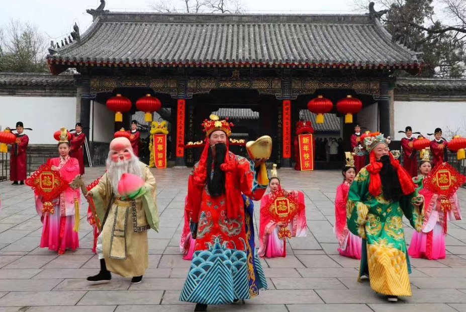 孟府孟庙景区山东琴书、变脸等非遗演出同样热闹纷呈。随着音乐响起,变脸表演者迅速变幻脸谱,白、红、黄等各色面貌令人目不暇接,人群中欢呼声、掌声连连不绝。在亚圣殿前,大家书写祈福牌、行古礼拜孟子,在了解传统文化礼仪的同时,为新一年增添好兆头,更让优秀传统文化与传统礼仪得到推广和传承。