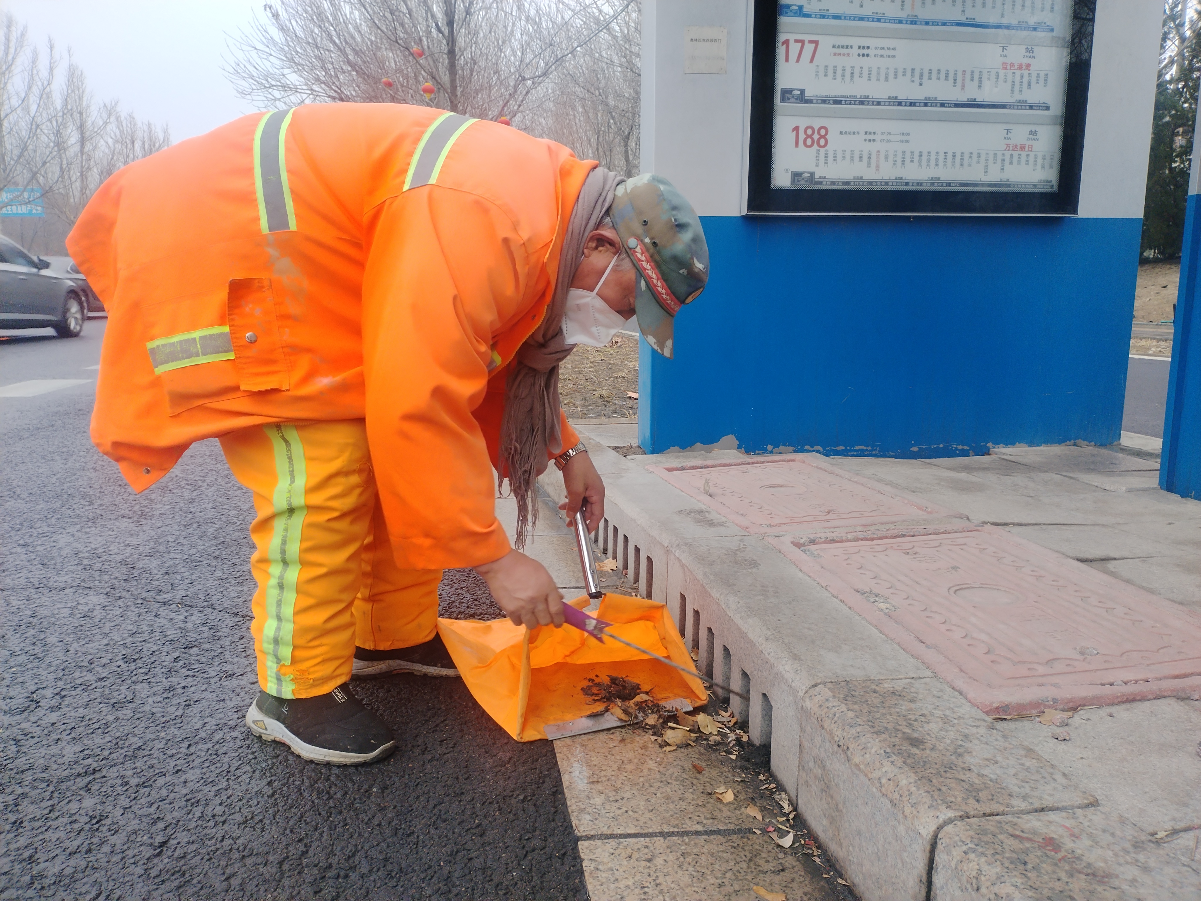 在开发区的大街小巷、各个路段都可以看到身穿橘黄色工作服的环卫工人们的身影。2月18日下午,正月初九,正值假期过后工作日第一天,在东营经济技术开发区东四路上,68岁的环卫工董福金从假期到现在依然坚守岗位。吕福荣正他用夹子,将纸屑、落叶等捡到垃圾回收袋内,路过的下水道则用铁钩子将里面的阻塞物清理干净。路面上的每一个角落,吕福荣都要仔细查看,确保负责路段干净整洁。