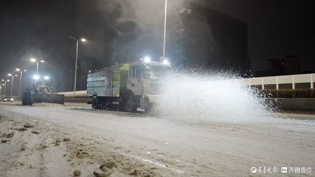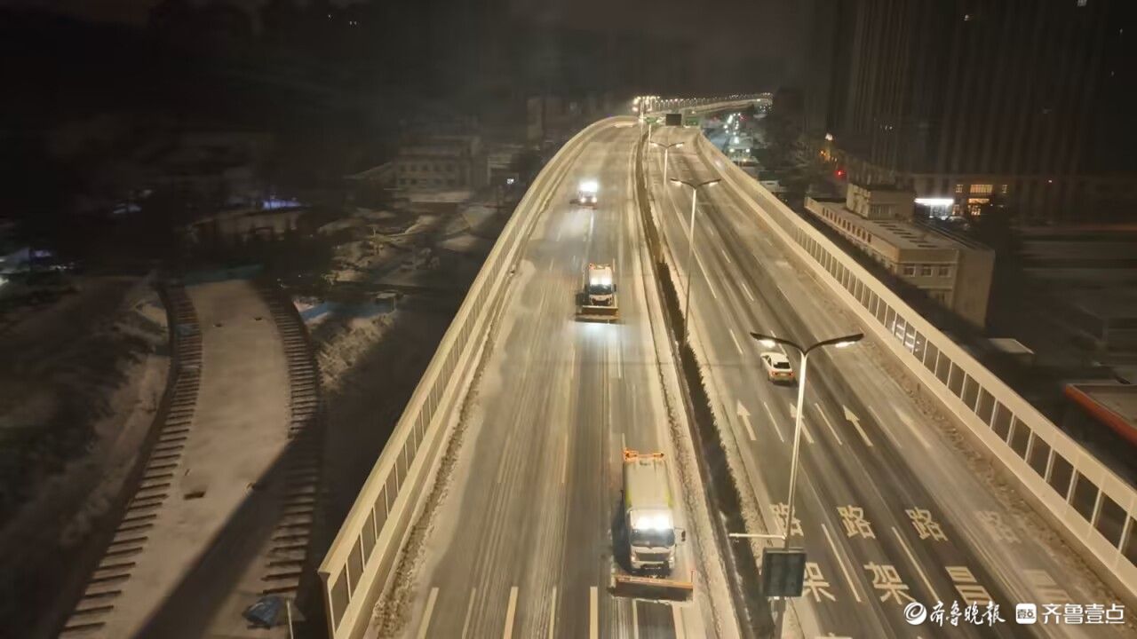 “针对此次降雪,我们共准备了15辆液体融雪剂洒布车、3辆雪铲车、3辆雪滚车、2辆固体融雪剂洒布车以及4辆巡检车辆,提前对清雪设备进行保养和调试,储备液体融雪剂300吨,固体融雪剂40吨,组织车辆、人员提前到岗到位。”青岛城发集团项目工作人员李先军介绍,从2月19日晚降雪开始,重庆高架路立即进入一级备战状态,所有人员、机械、车辆全部上路,以雪为令、迅速出击,采用“机械为主+人工为辅”的清雪作业模式。“我们进行编组化作业,一组3辆雪铲车、2辆雪滚车和3辆大型铲车呈梯形队伍排开,车距保持在50米左右,车速控制在每小时15公里,确保先通后净、即下即清,提高清雪除冰效率,保障市民出行安全。”
