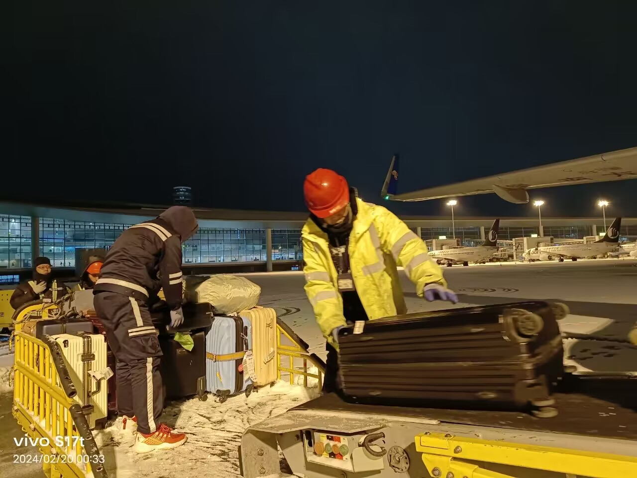 2月20日晚,受寒潮天气影响,青岛市迎来降雪和冰粒。青岛机场提前部署、多措并举,第一时间调度人员、设备、物资,最大限度降低特殊天气对机场安全运行及旅客出行的影响。