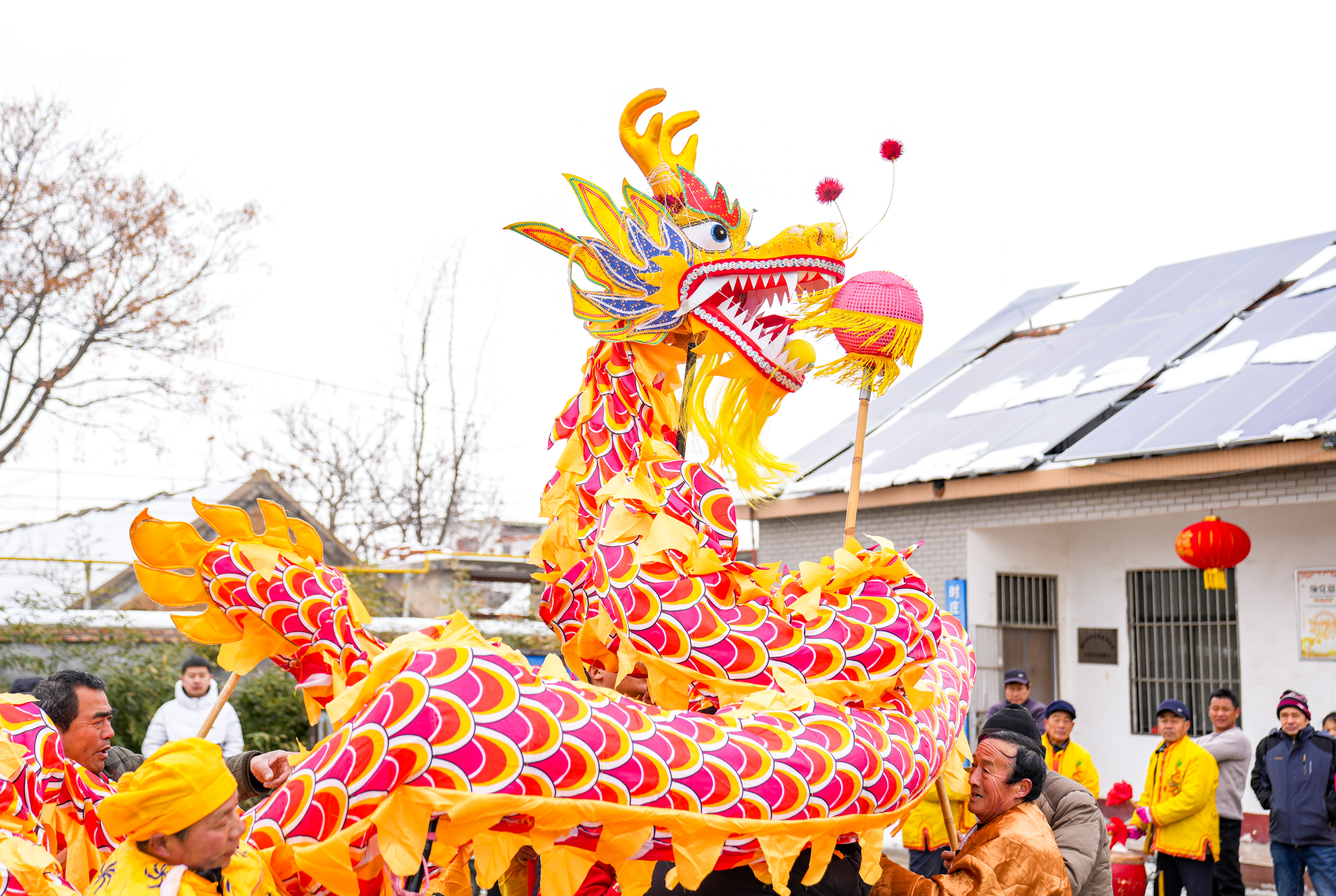 2月22日,正月十三,下午2点。“来彩排了……”伴随着村头喇叭的响起,曲阜市时庄街道刘家村的村委大院里瞬间变得热闹起来。虽是雪后天寒,但依然阻挡不住村民们的热情。只见他们结伴走进大院的道具间,高跷棍、舞龙舞狮、花船、锣鼓唢呐等装备被他们一一装扮上,开始了元宵节前最后一次演出排练。