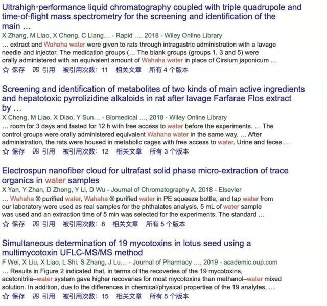 据相关词条搜索,论文中提到“wahaha water”的也不计其数: