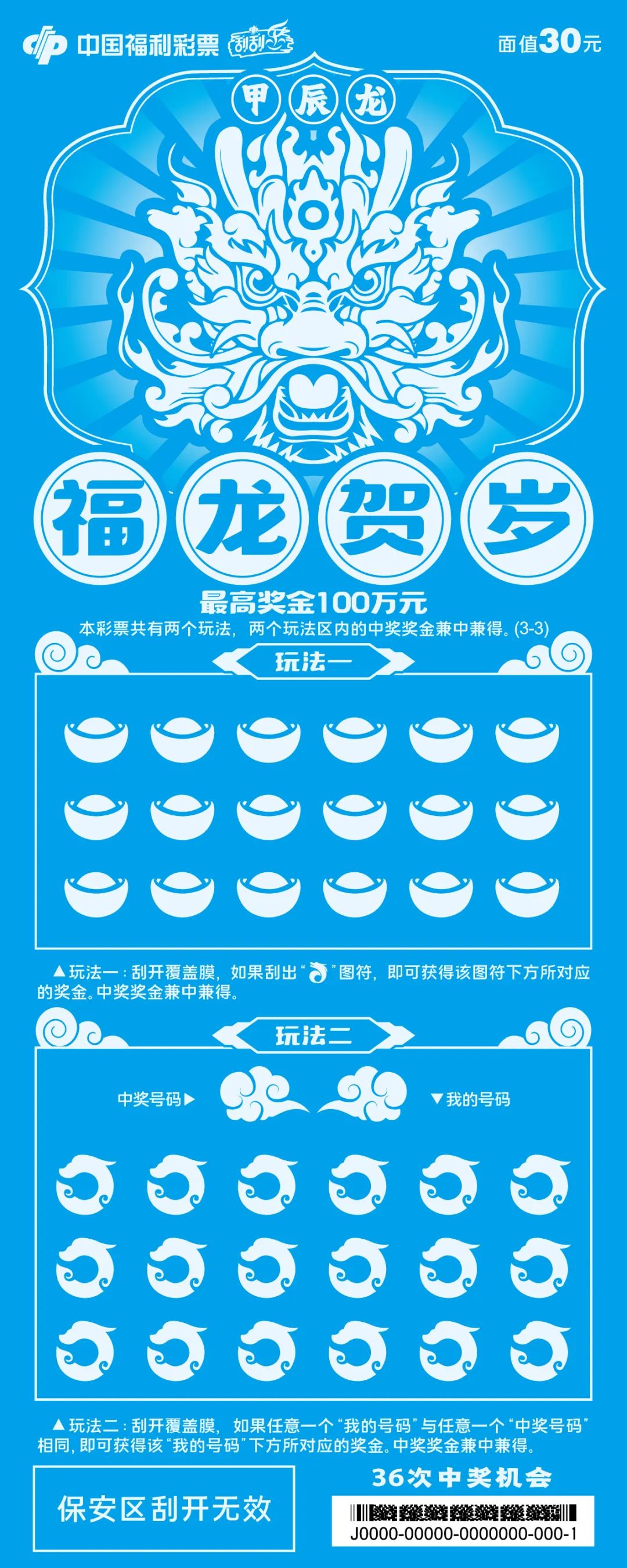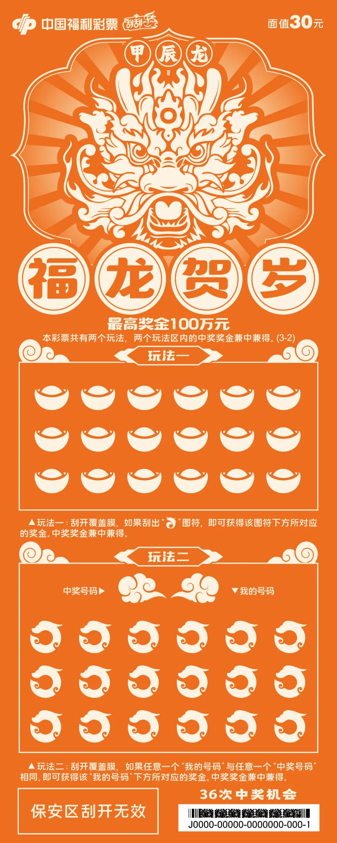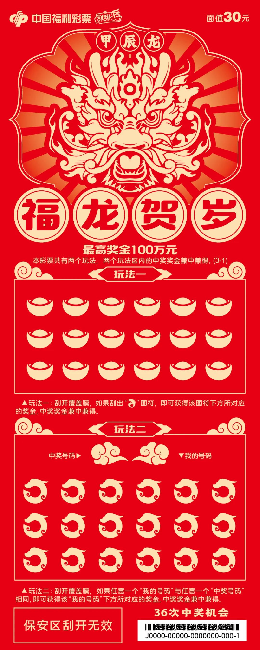 【刮刮乐】甲辰龙30元——福龙贺岁,最高奖金100万元!