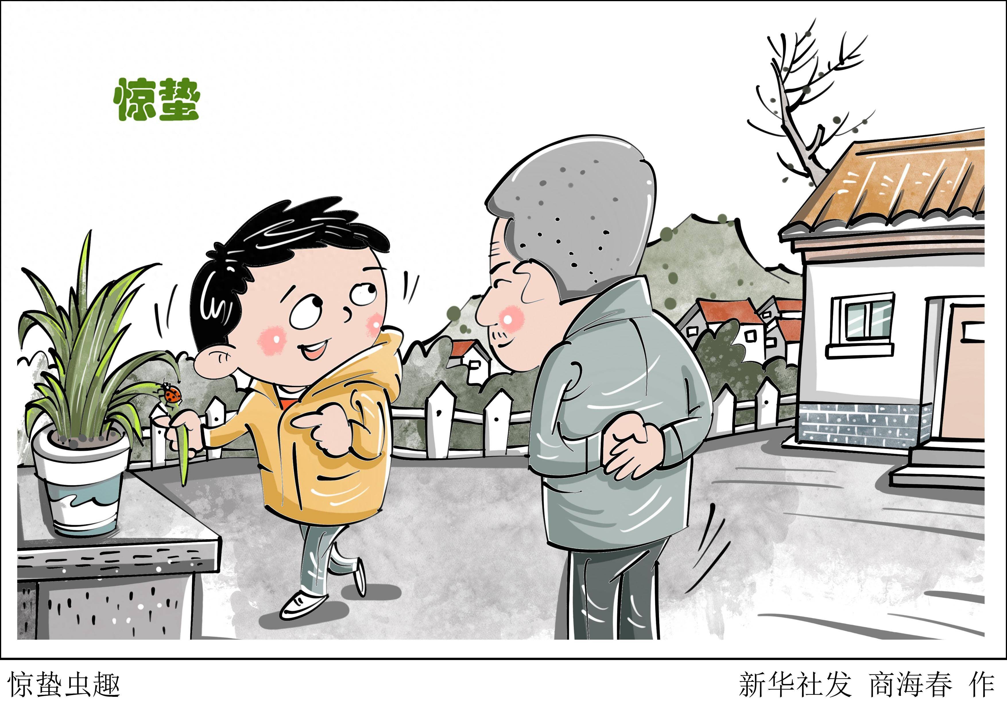 原标题:(图表·漫画)二十四节气·惊蛰丨惊蛰虫趣 (图表·漫画)二十四节气·惊蛰丨惊蛰虫趣 新华社图表,北京,2024年3月4日 “微雨众卉新,一雷惊蛰始”,北京时间3月5日10时23分将迎来惊蛰节气。此时节,大地回春,蛰虫初醒,风含情,水含笑,天气暖了。 当太阳到达黄经345度,春天的第三个节气惊蛰到来,标志着仲春时节的开始。 新华社发 商海春 作
