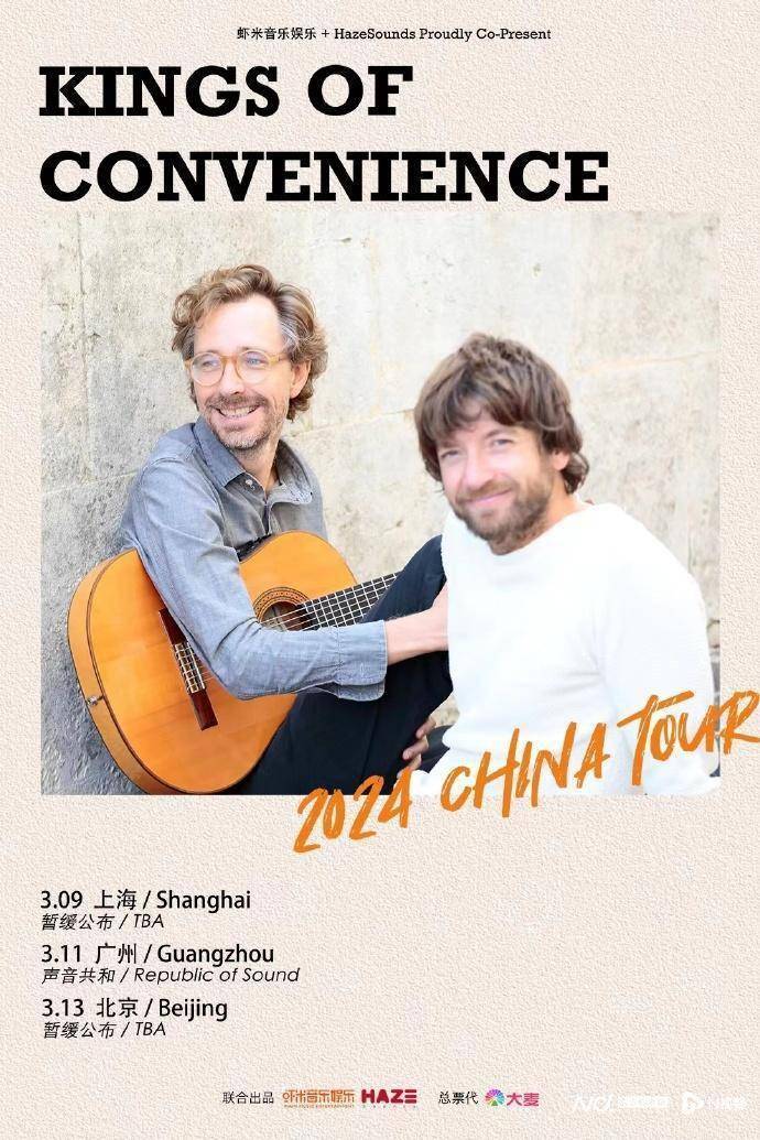 挪威民谣乐团Kings Of Convenience也将于3月来到中国。