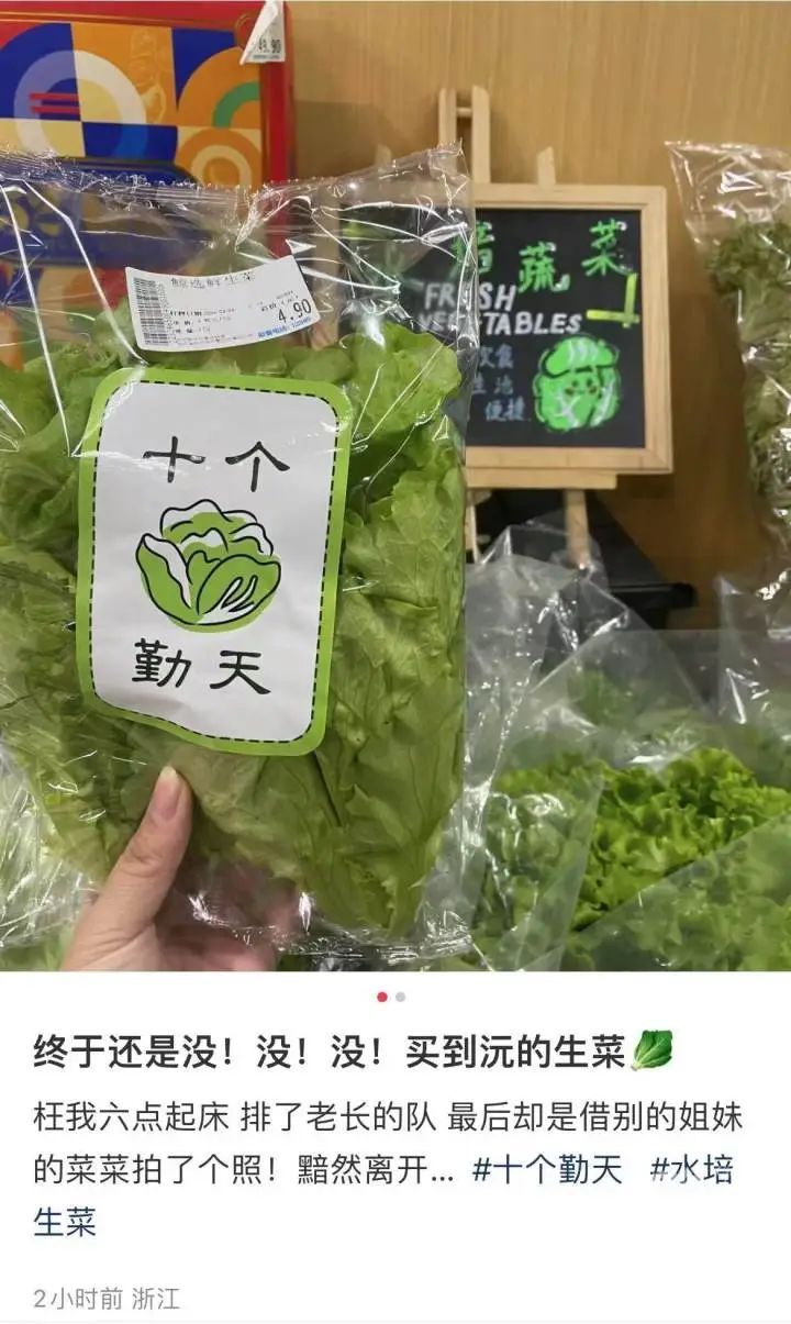 节目的火爆带动了线下市场“一菜难求”,消费者多是节目和成员的粉丝。据钱江视频报道,有超市七点半开门,这款生菜在八点就已售罄。