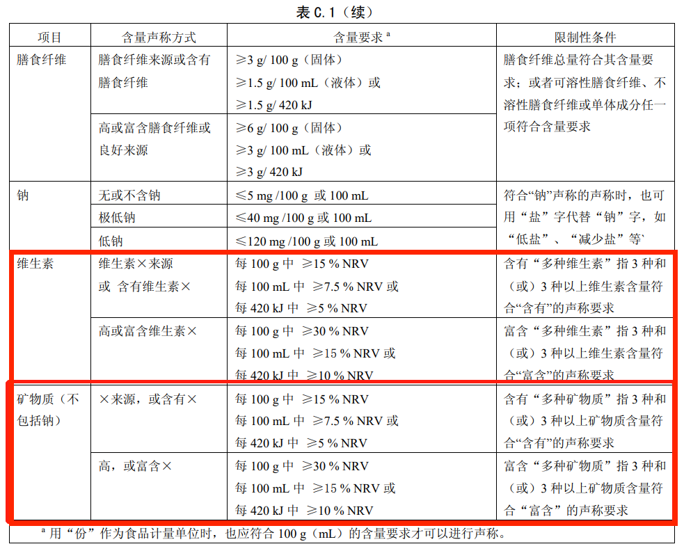 “X来源或含有X”“维生素X来源或含有维生素X”,不低于15%才能声称“高,或富含X”“高,或富含维生素X”。