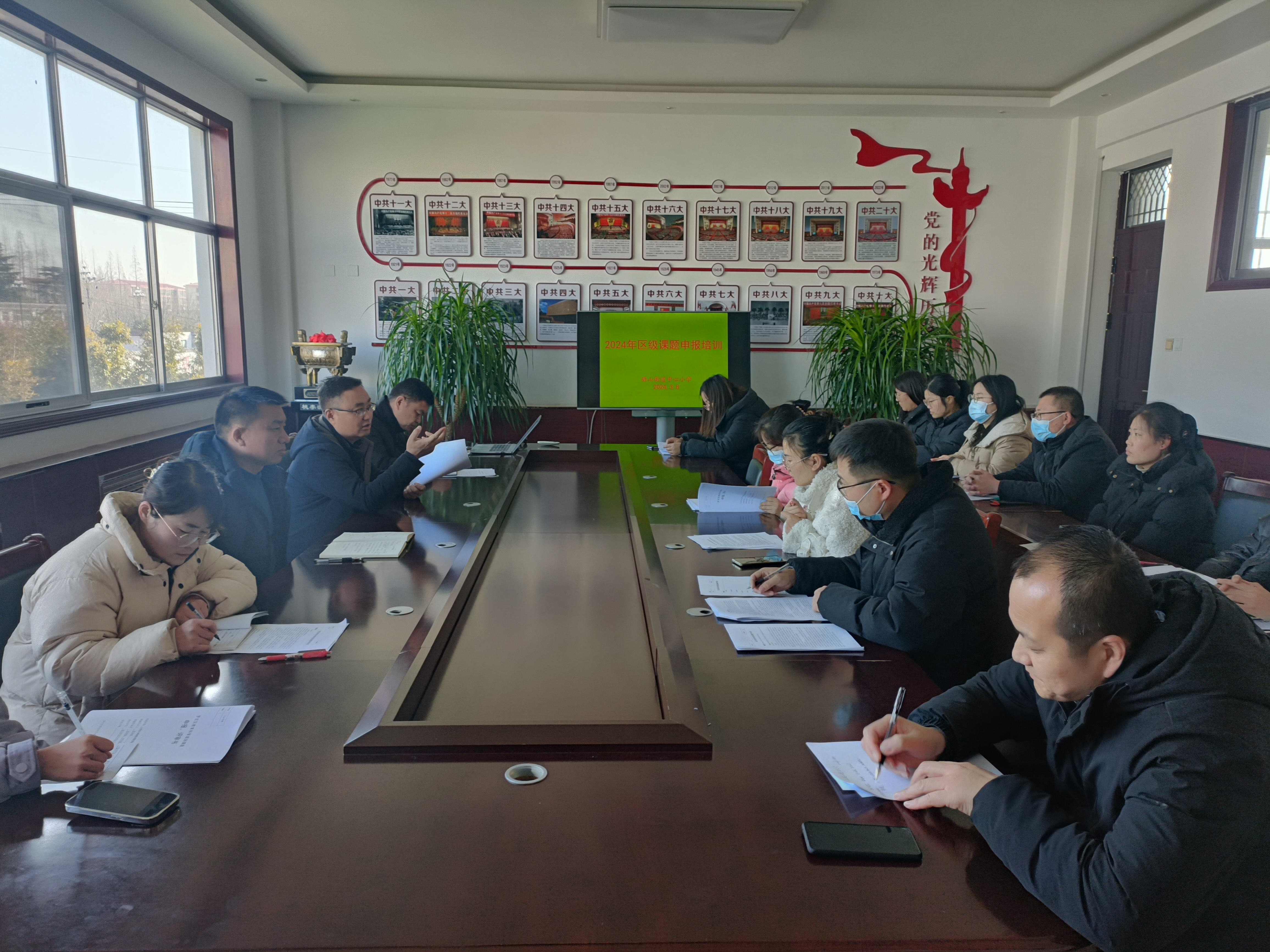 杨洪德在培训活动前作动员时说,课题研究是教师专业成长的平台和载体,教师要积极参与,争做研究型教师。李秀彬鼓励教师要善于学习,从教学实践中寻找问题,提炼课题。赵高岭为教师作了《2024年区级课题申报》专题培训,主要内容有《罗庄区教育科研课题管理办法》解读、《2024 年度罗庄区教育科学“十四五”规划课题选题指南》学习,怎样填写课题申报表和课题申报活页等内容。培训活动结束后,徐国良针对教师对教科研课题申报中遇到的问题作了说明,给予了具体解答。