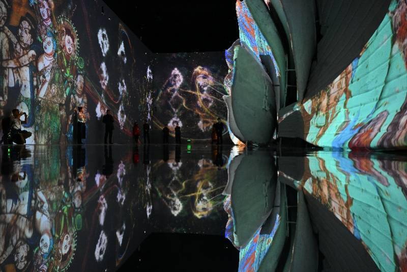 观众在中国国家博物馆参观“华彩万象——石窟艺术沉浸体验”。本次沉浸体验展陈空间约1500平方米,艺术家结合数字绘制、数字影像和AI算法技术,以当代眼光和独特视角来表现、挖掘和阐释克孜尔石窟、敦煌莫高窟、麦积山石窟、云冈石窟和龙门石窟的艺术风格与丰富内涵。 新华社发