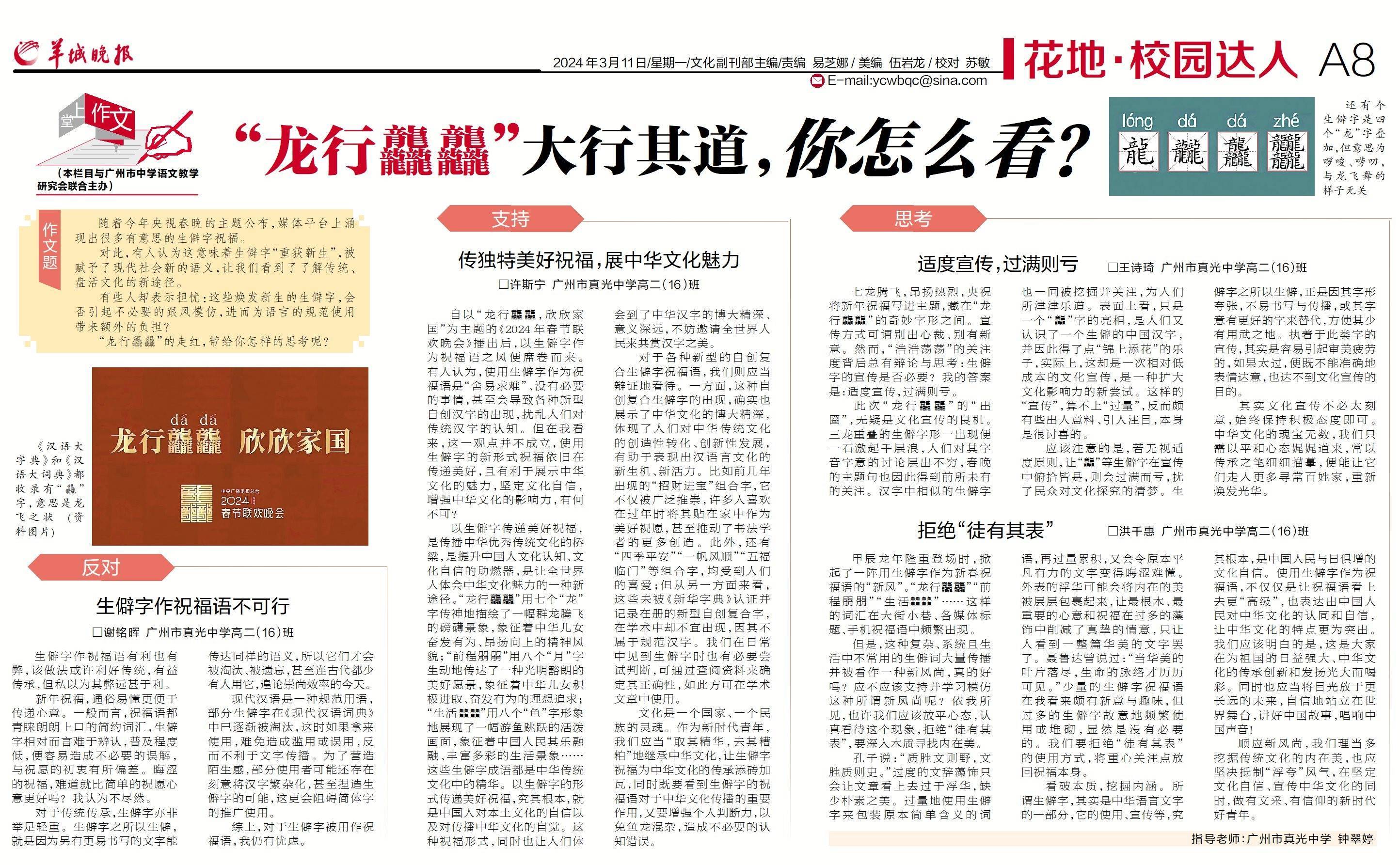 原标题:堂上作文 | “龙行龘龘”大行其道,年轻人怎么看?