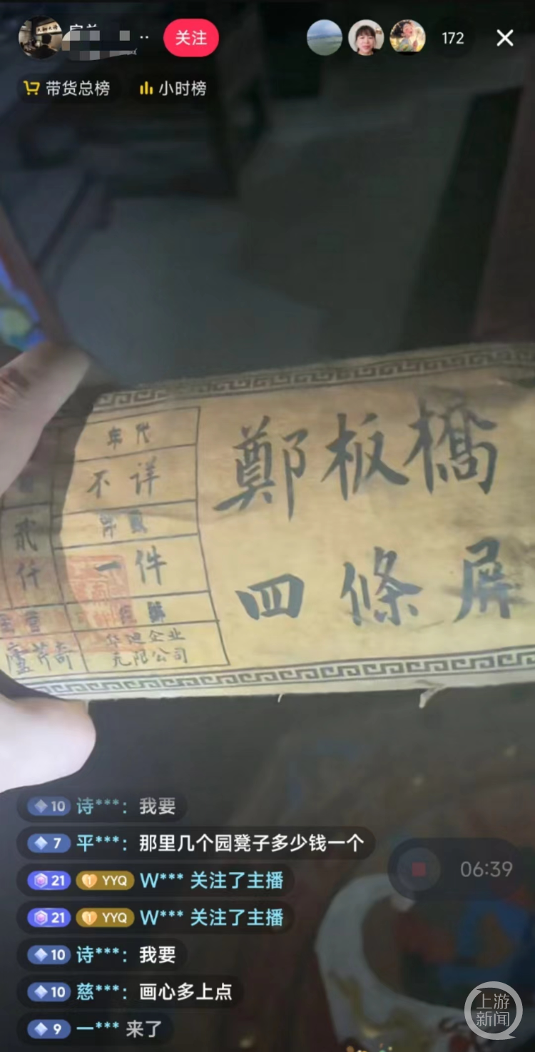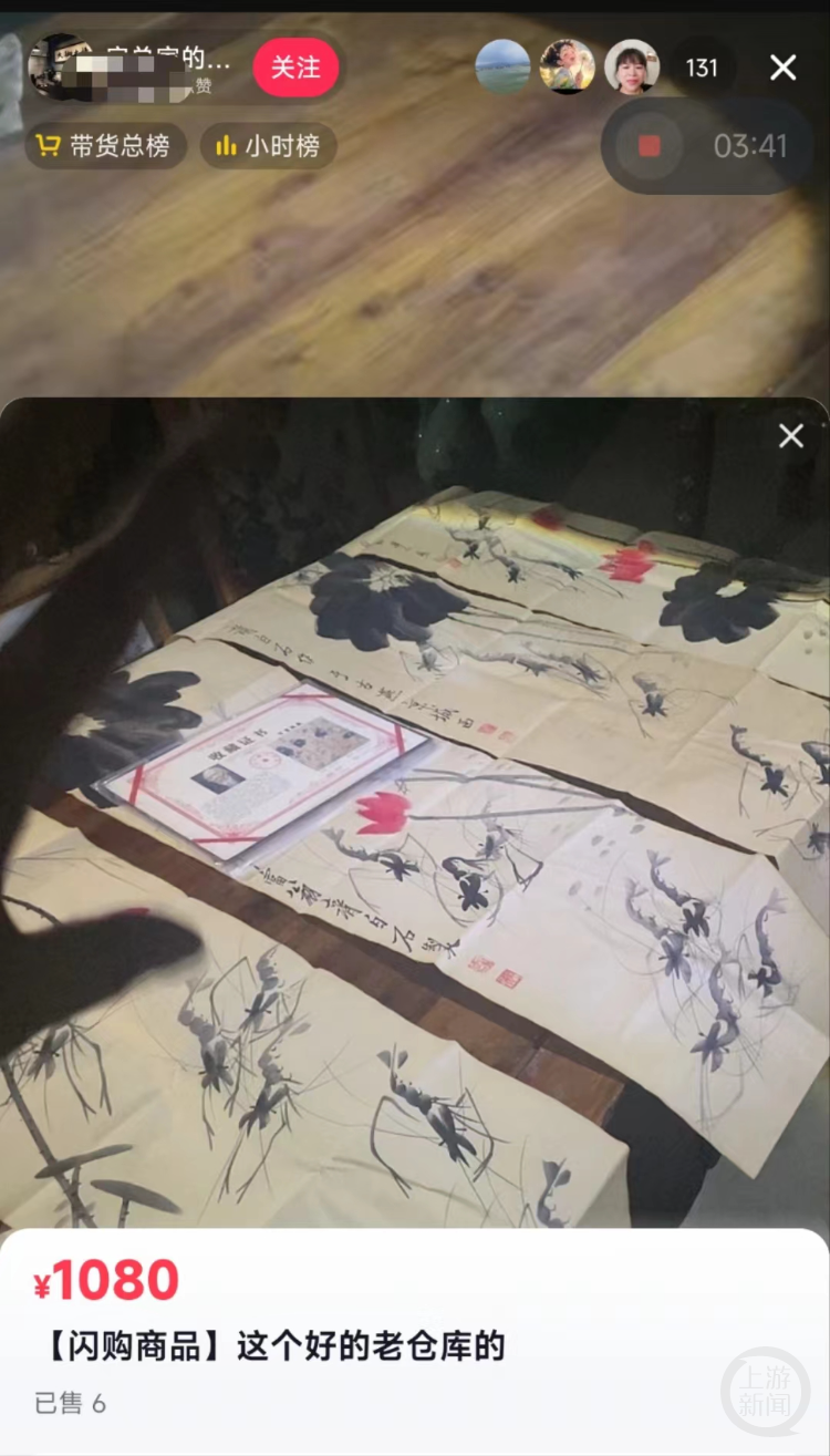 “我不缺钱,只缺朋友。家里四代人做收藏,这个仓库的货就值7个亿以上”“齐白石4幅画1080元,要的话就上小黄车了”“民国时期的十二生肖茅台,我这里只有9大坛,一坛3168元,有实力的来……”近日,有网友表示晚上刷抖音时,偶然发现一个宣称售卖名家字画和古董的直播间。主播面对镜头侃侃而谈,称自己手里很多珍贵藏品,还有防伪标记,愿意低价出售,“只为交朋友”。看到标价35元的张大千画卷、159元的郑板桥关山月、1080元的齐白石四幅画虾图,不少网友动了心,抢着下单。真能用这么低的价钱在直播间买到名人字画?如果售卖假画,面临何种处罚?上游新闻(报料邮箱baoliaosy@163.com)记者对此进行了一番打探。