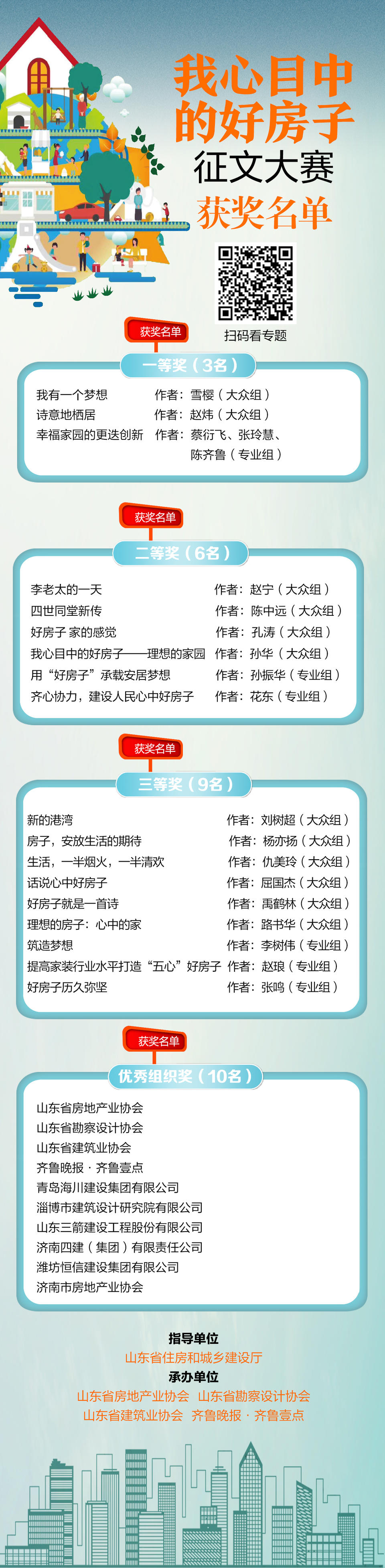 3月15日下午,在全省高品质住宅建设推进大会现场,山东省首届“我心目中的好房子”征文大赛获奖名单揭晓。